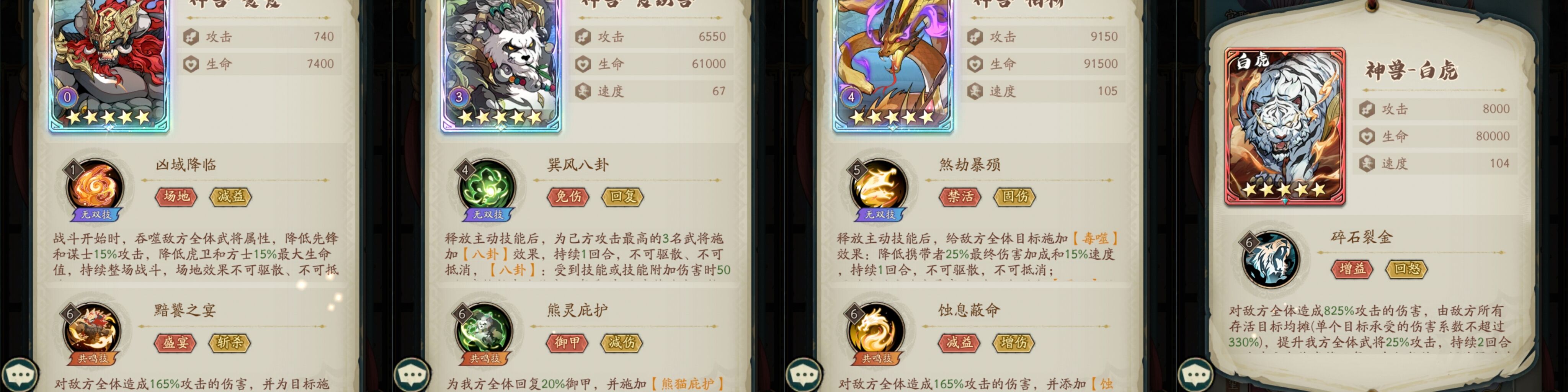 4号位:白虎(提升我方队伍的攻击暴击暴伤以及回怒)