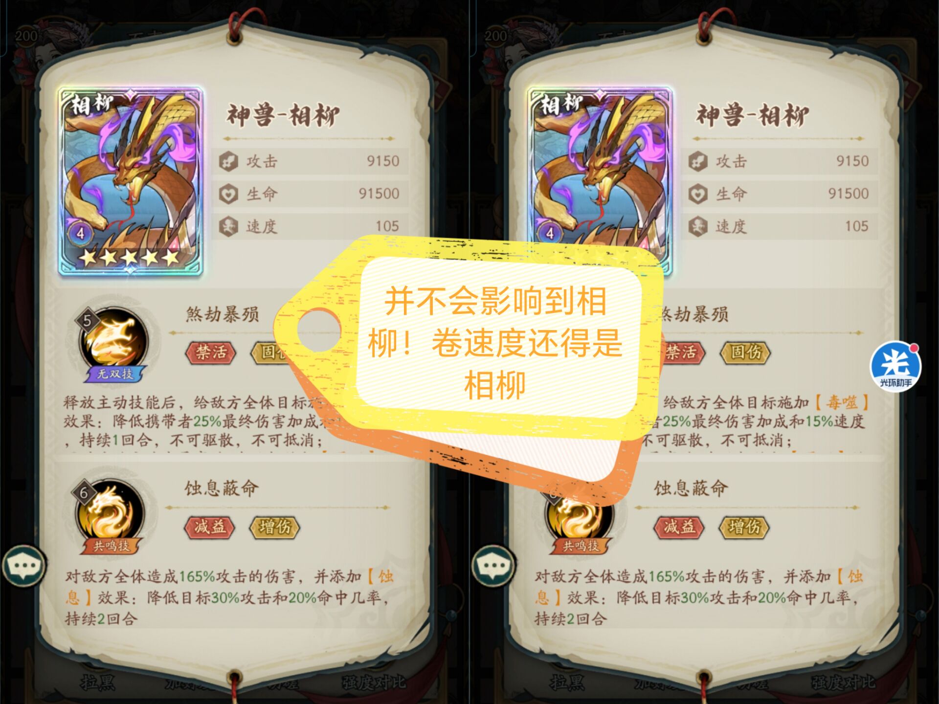 只能说饕餮影响了一些相柳的就业率!但对于卷速度的玩家来说相柳还是首选1号位的神兽。