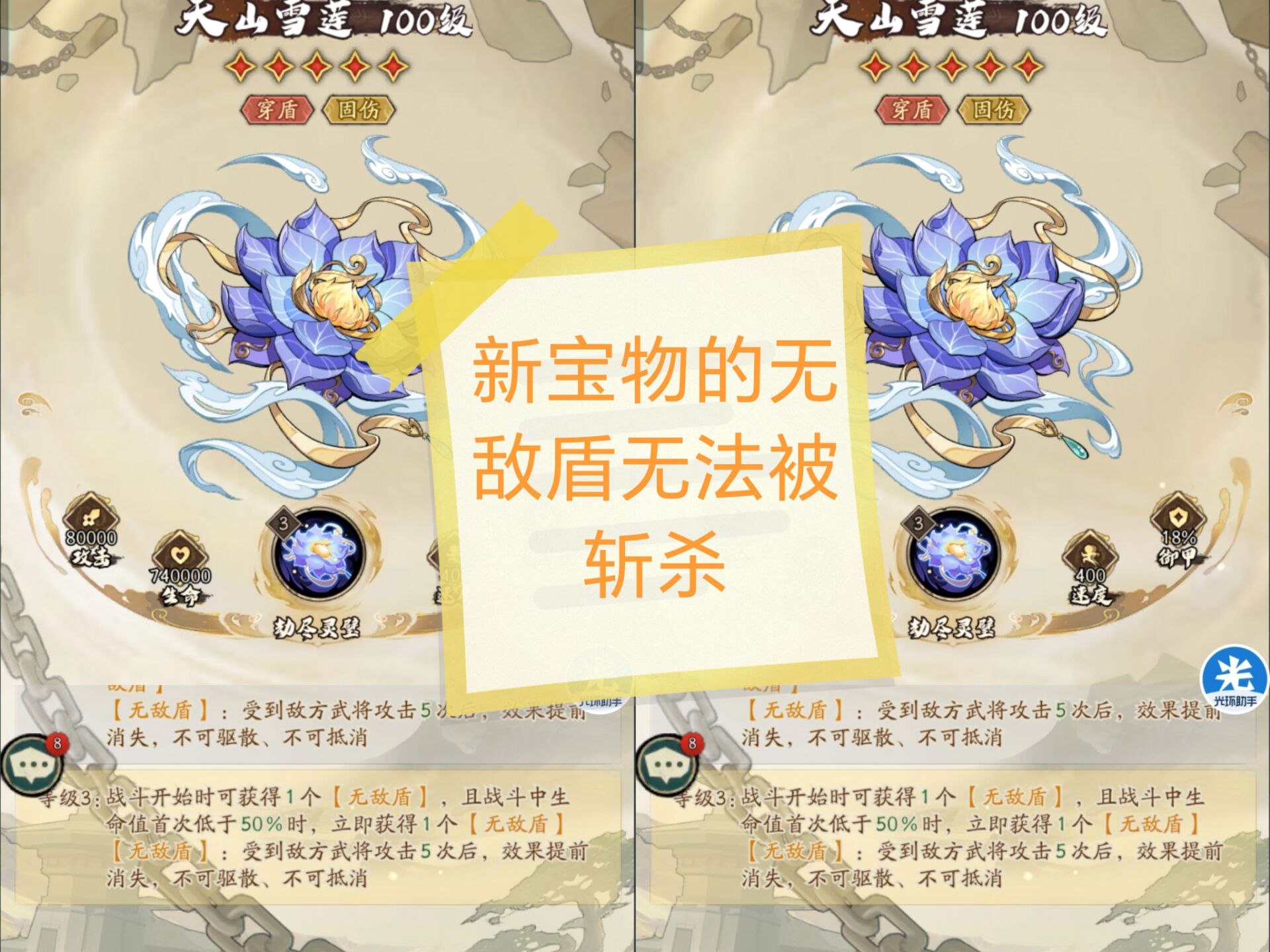 目前能够免疫饕餮的斩杀只有新宝物的【无敌盾】看来只有一物降一物!新的才能克制新的这就是新宝物贵的道理。