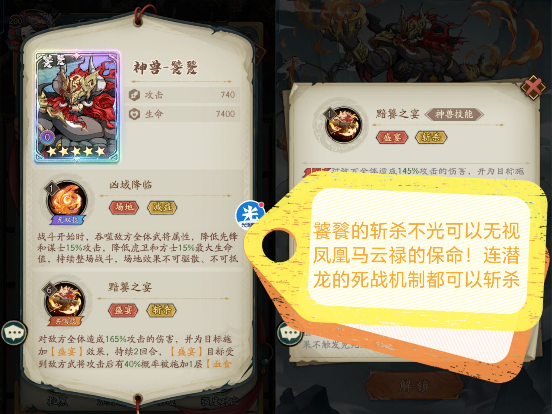 解析:这套神兽组合适合3星以上的饕餮放在1号位或者2号位。