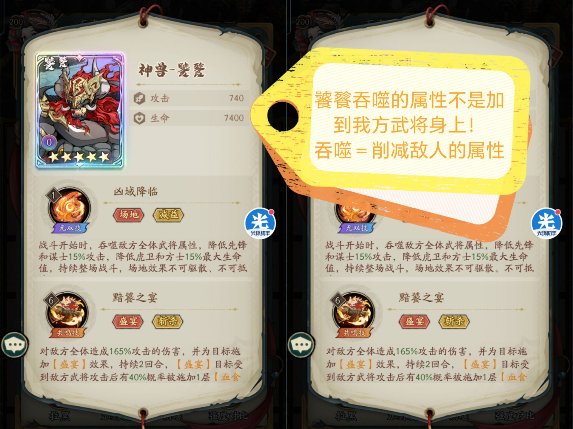 如果饕餮吞噬的属性是加到我方武将身上的话那么这个神兽就更加逆天了!
