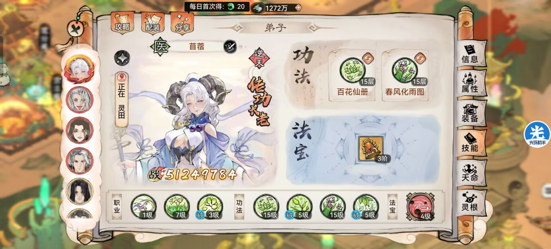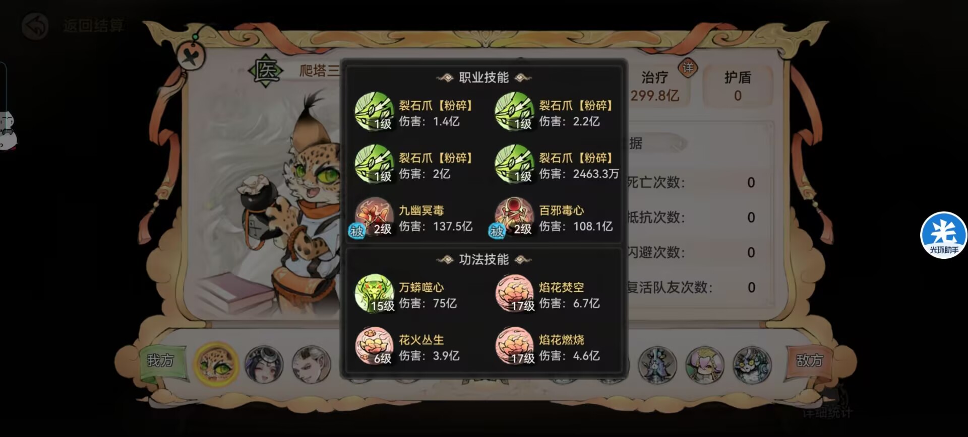 解析:百花必备!这个不用狮子多解析了,玩苜蓿必备的功法,给队友治疗和复活。
