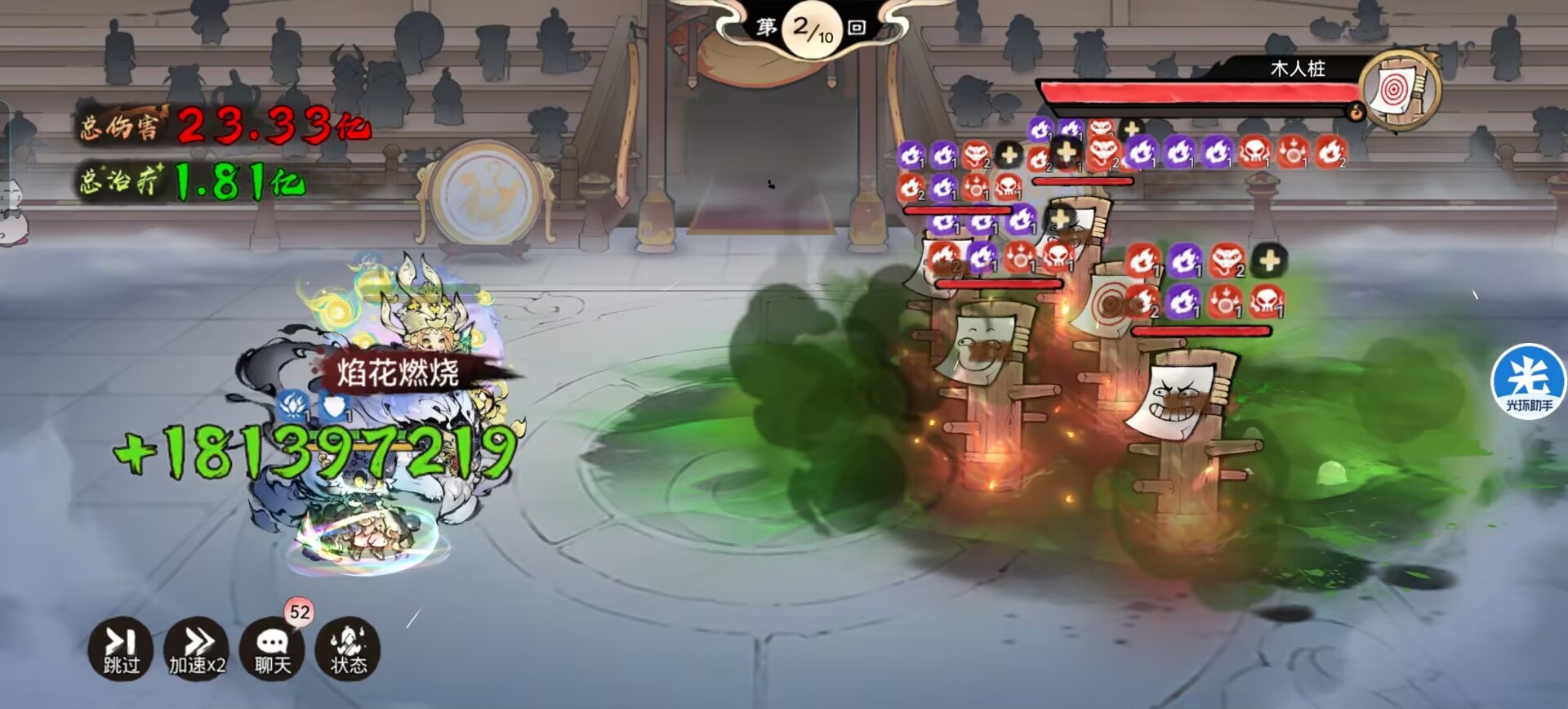 春风化雨图:回血!同时降低队友受到的物理伤害,不仅可以提升自身的生存环境同样可以提升队友的生存环境,并且每回合开始都可以触发回血从而快速叠诡毒。