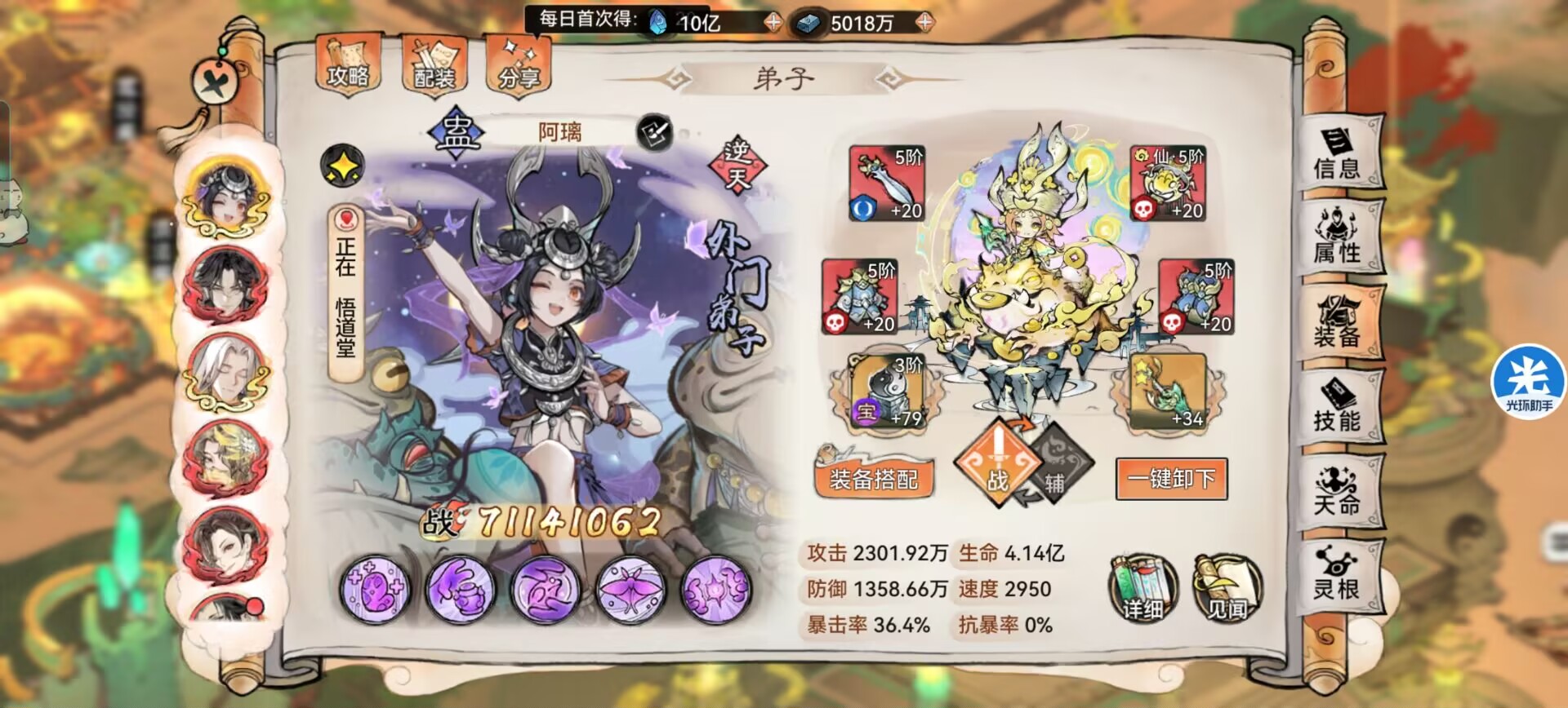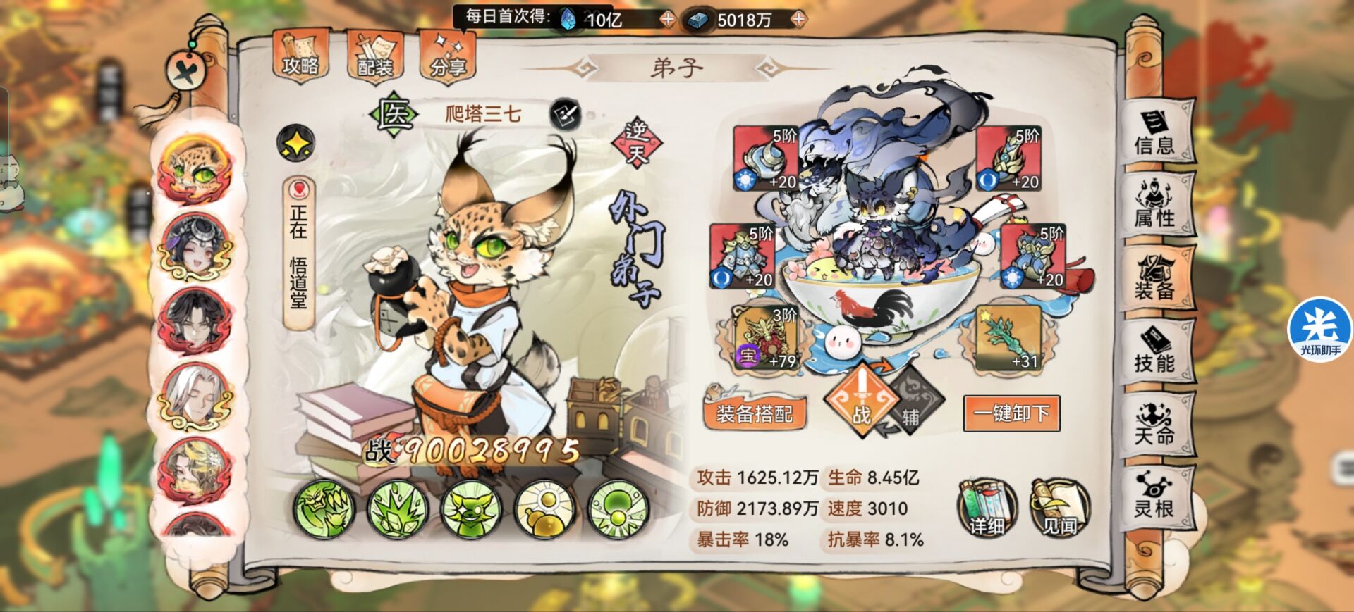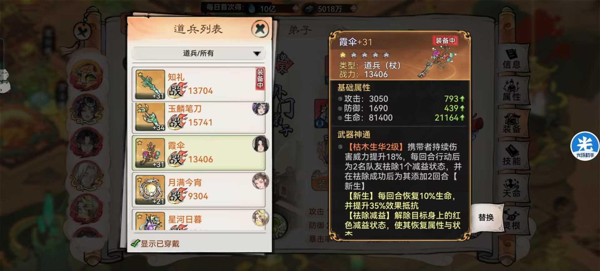 当然如果你觉得生存不够可以选择:【知礼】【月满】这类可以提升生存的道兵。
