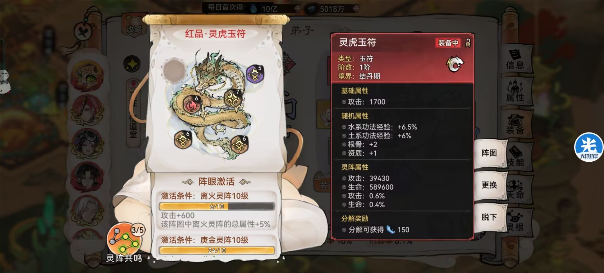 ⑤三七灵阵也可选择:土阵(提升抗暴)