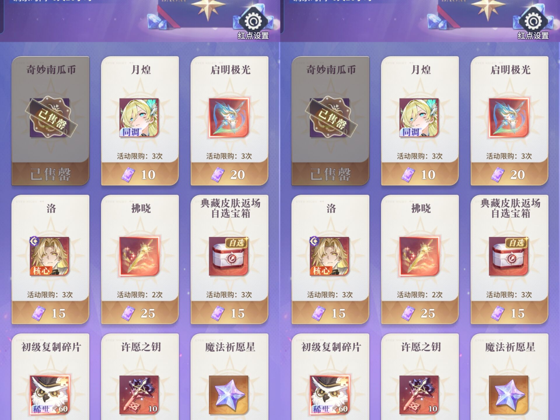 ②奇妙集市只能购买=6个魔法祈愿星。
