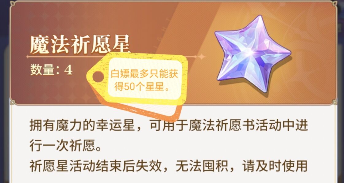 白嫖只有这三种获取途径,一共只能获得50个魔法祈愿星。