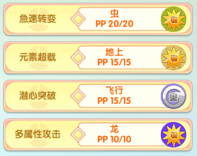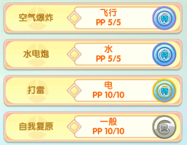 想要稳健一点的话,可以考虑上方图中的这个配置,三个攻击招式,然后再配合自我复原,其中这三个攻击招式,你要说能把他三个打击面全部防住的,也只有一个钢龙属性,没错就是上个版本加强的钢龙属性可以全部完美联防,但是别忘了自身还可以学习地上招式给予克制,反正水电飞这三种打击面是最基础的,是不能够有所替换的,因为这三种打击面,除了部分钢龙属性打不动之外,其他的精灵都可以打得动,打击面可以说是相当强。