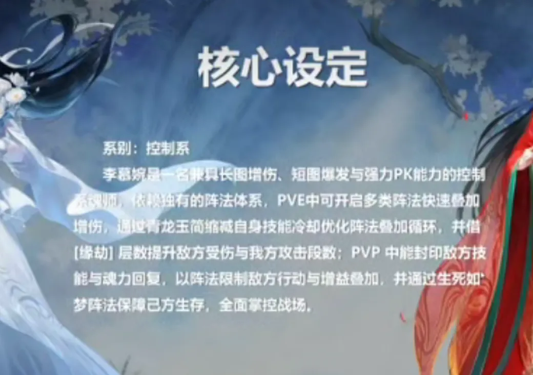 首先从官方对李慕婉的描述中我们就能发现,李慕婉在官方的定位上是具备短图、长图和PVP等三端的综合能力,这个定位和之前的控制系SP霍雨浩、SP阿银等角色就非常类似了,所以从这点来讲,官方设计李慕婉的预期强度其实就该和这几位看齐。