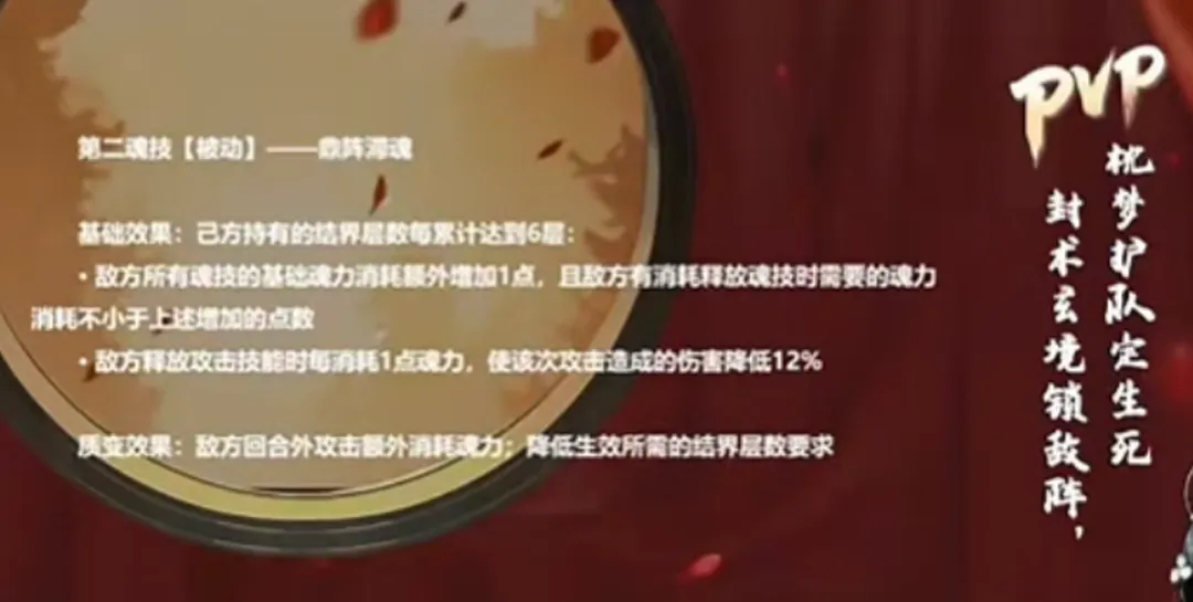 接着PVP种的被动则是按照自身持有的结界层数每达到6层来限制对方的各项能力......