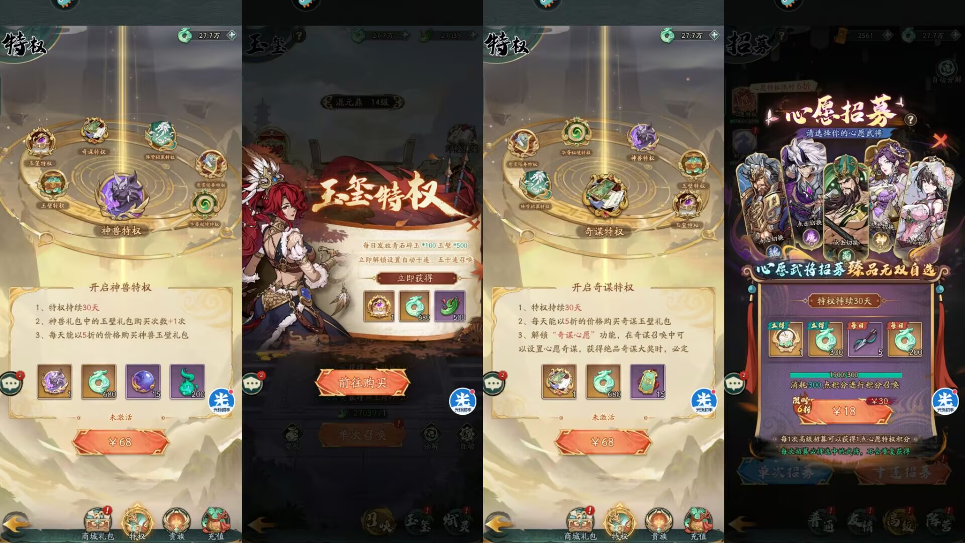 ①神兽特权68元一个月!新区可以买4-6个月,加快前期神兽的成型。