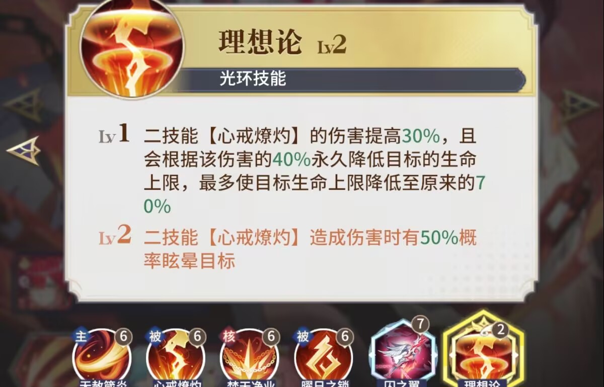 有光环技能可以让二技能【心戒燎烟】也有50%概率高效眩晕控制敌人。