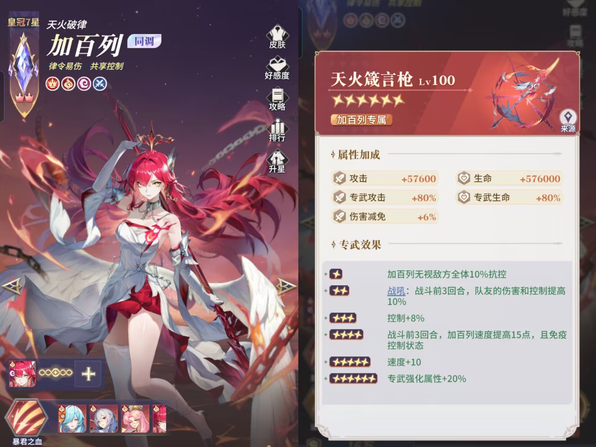 ⑥免控:专武4星后!直接免控所有控制,所以专武4星的含金量非常重要。
