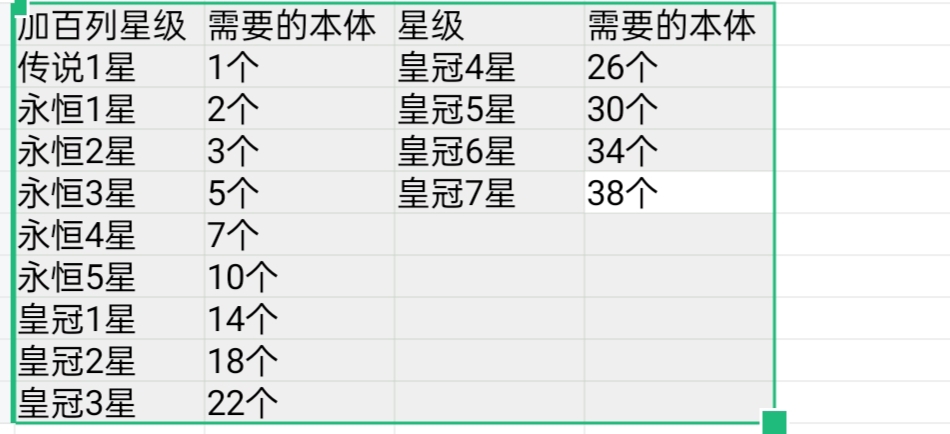3:【加百列】升星投资:升到皇冠1星需要多少个本体?需要多少抽?答:升到皇冠1星=14个本体。