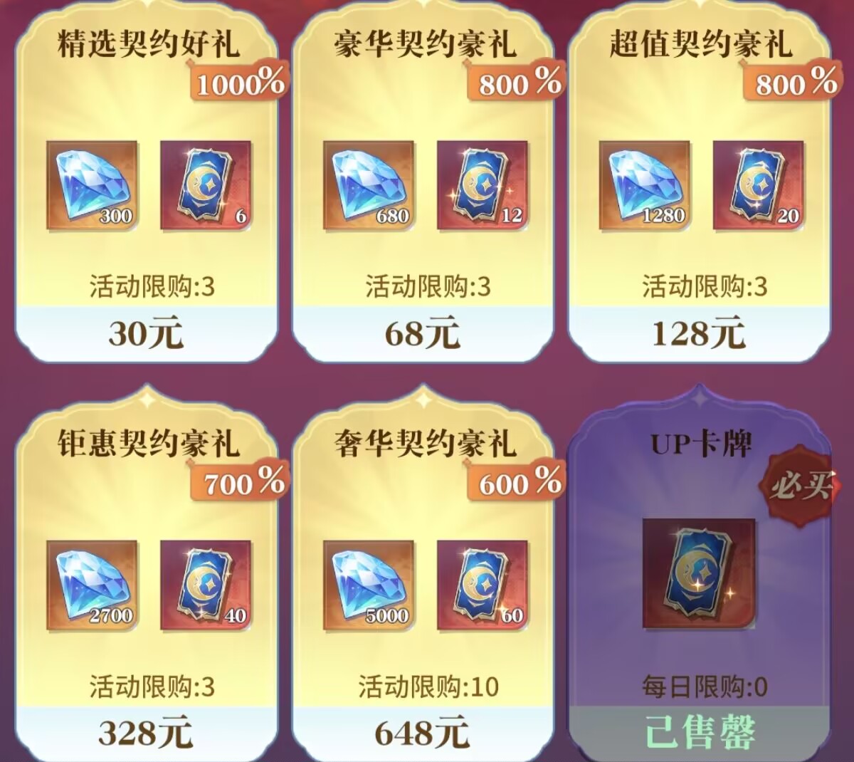 但是把本期所有up礼包买完,也无法补齐400抽!所以想抽皇冠3星以上的朋友需要之前有囤up卡牌抽奖券的朋友才能抽到皇冠3星以上。