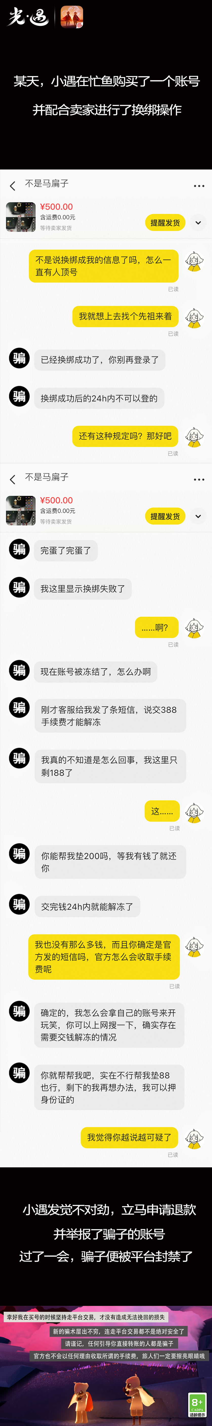 6、我们不⽀持旅⼈以任何形式进⾏账号交易,请保护个人信息与财产安全,警惕第三⽅交易,避免财产损失。