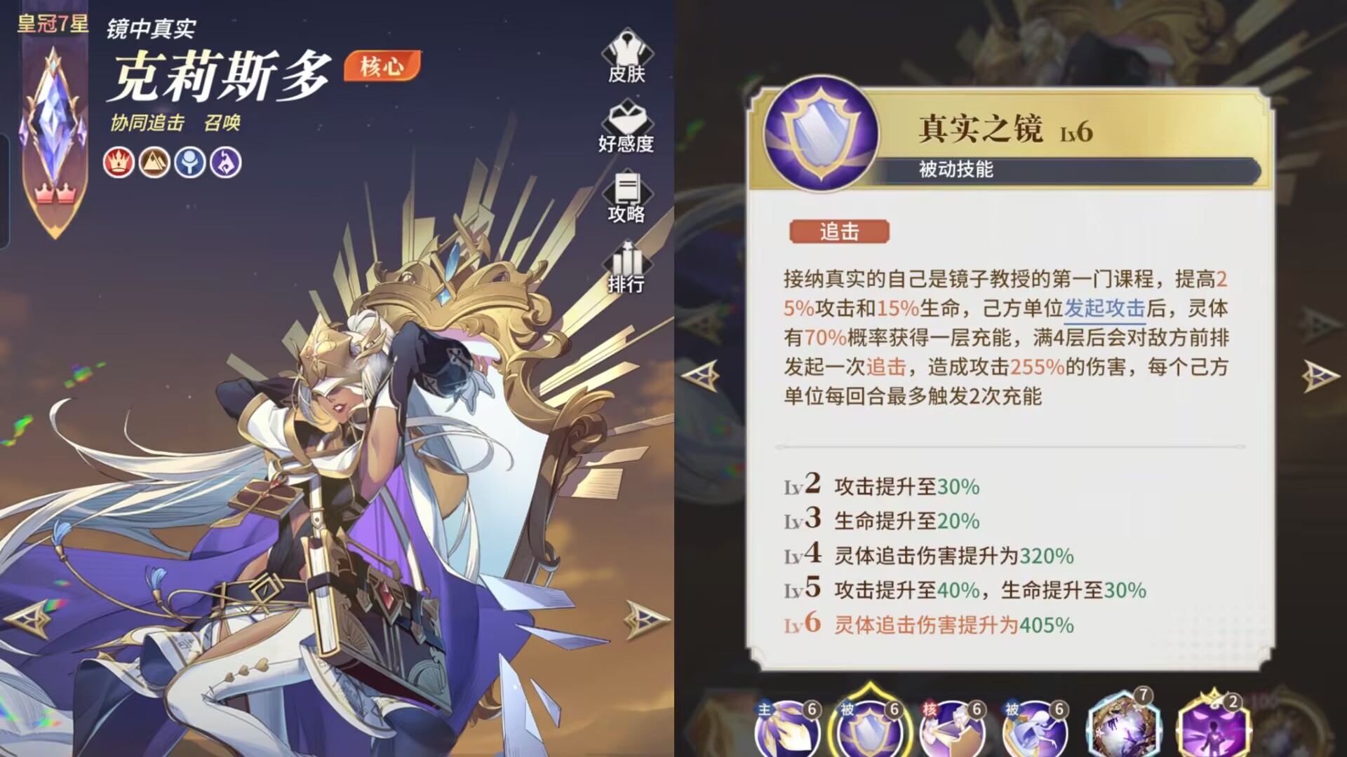 ②伊丽莎白:为队伍提升续航的和攻击加成同时还有解控和复活效果,极大提升队伍的容错率在面对敌人多频控制的时候,伊丽莎白的解控配合圣龙的解控能够起到很好的应对手段。