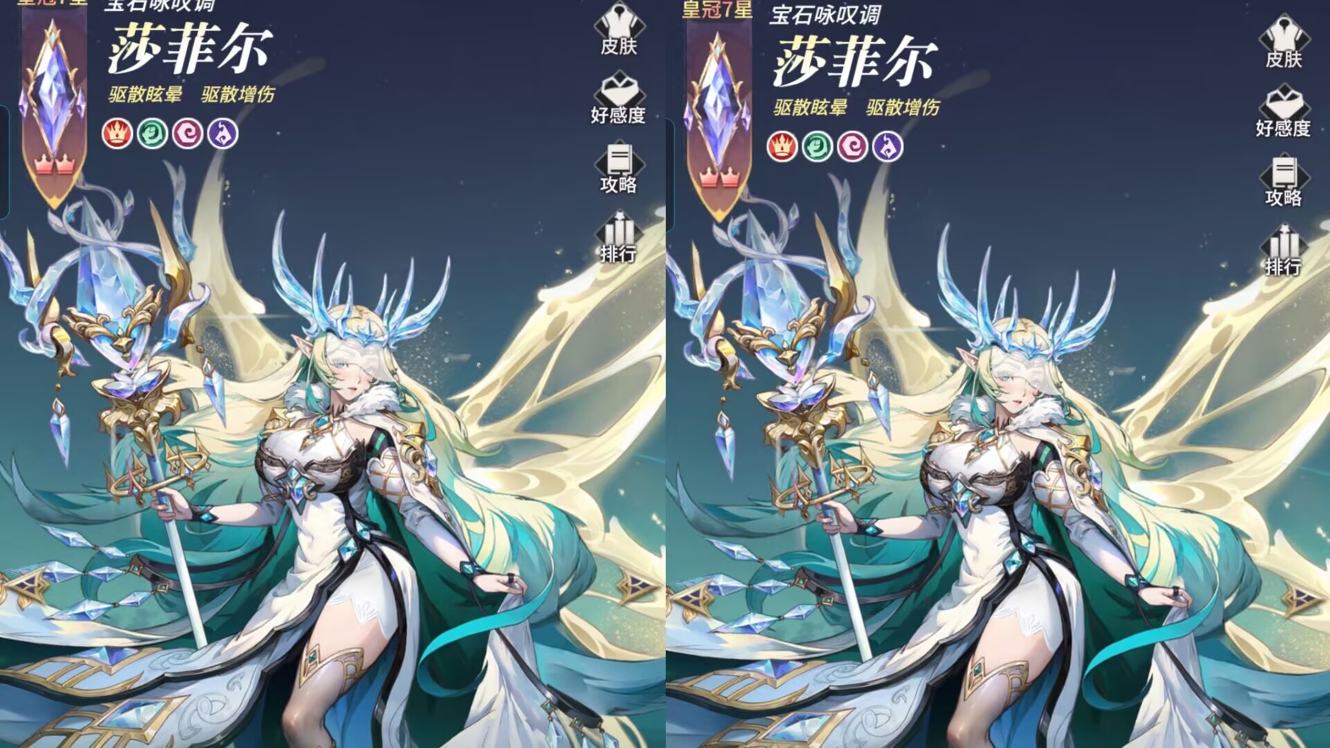 如果对面增益比较多和盾多的情况下,可以考虑换成莎菲尔来驱散敌人的增益和盾。