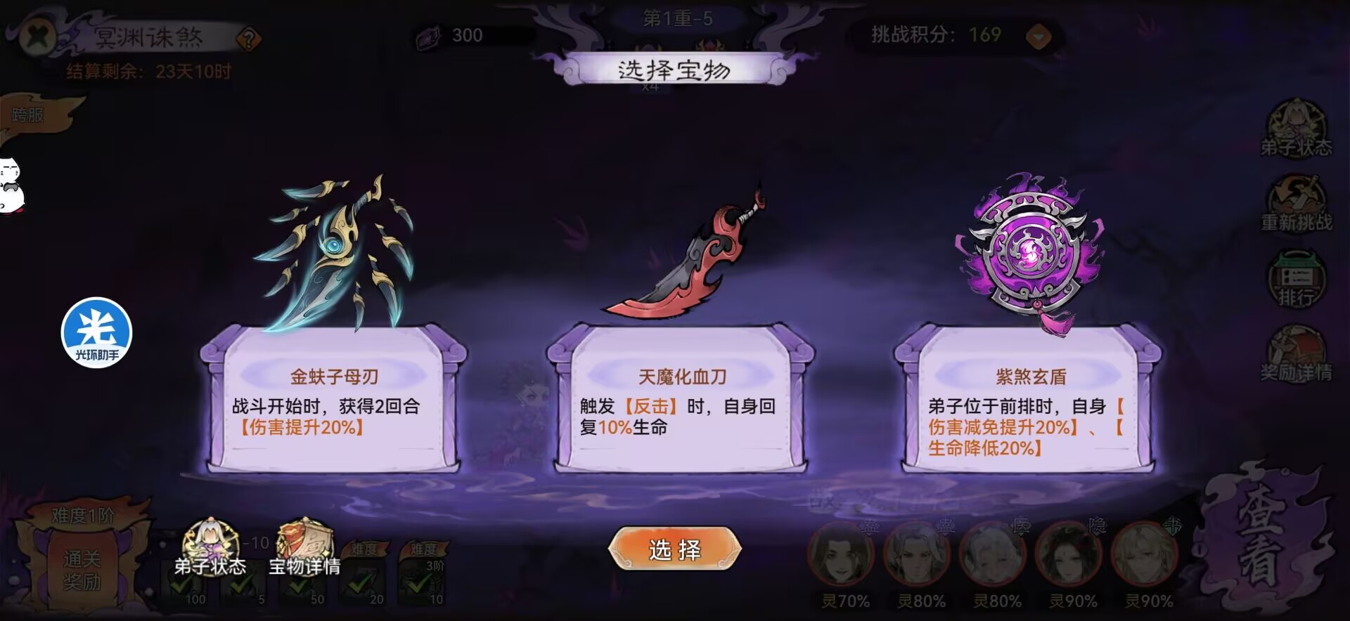 三:【冥渊诛煞】一些比较实用:但是会比较麻烦的小技巧。我们用三队或者二队弟子挑战的时候可以把一队弟子的【装备】【灵阵】【法宝】【道兵】都趴给三队或者二队弟子穿!