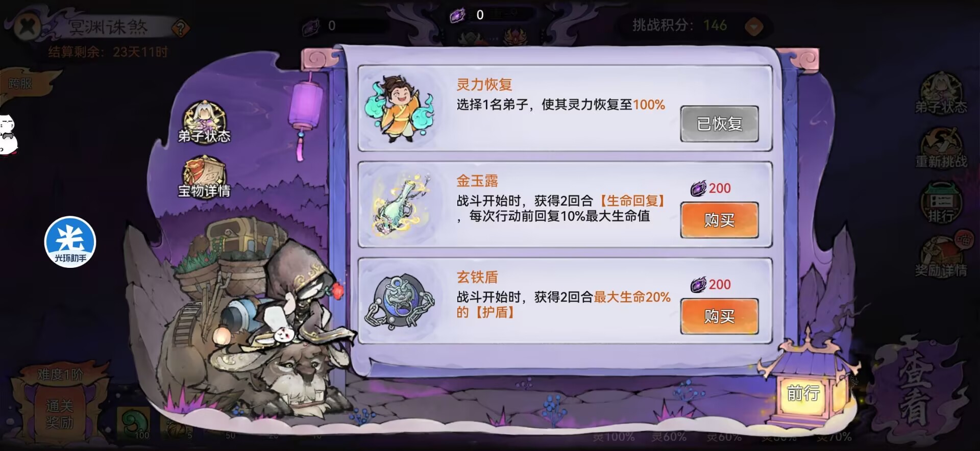 ⭐然后最重要的来了,打到1-9会触发商人!记得花500灵力给阿璃回复灵气!因为我们阿璃接下来还是需要用的。