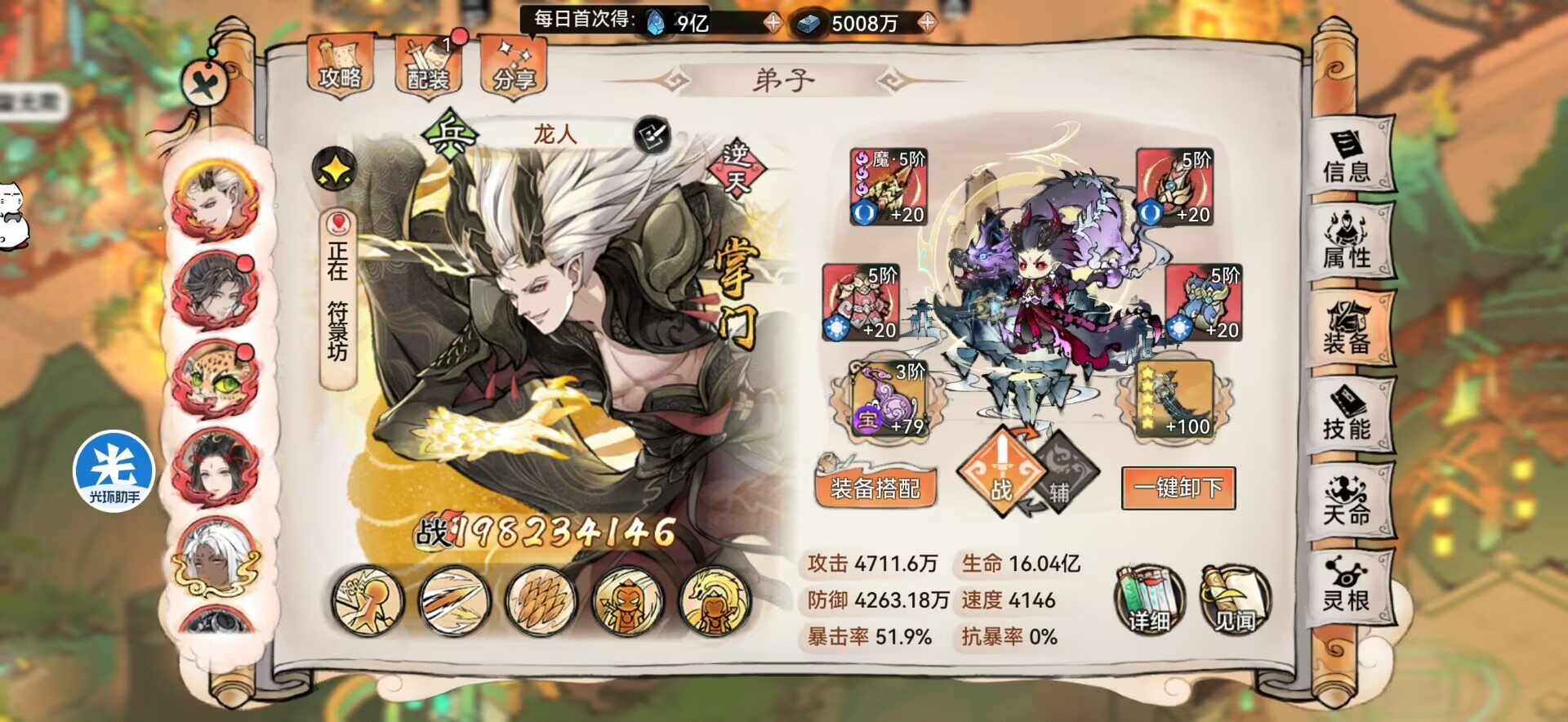 ④其他挂件弟子就找自己阵容中的战力比较低的弟子就行!比如:辅助禅。
