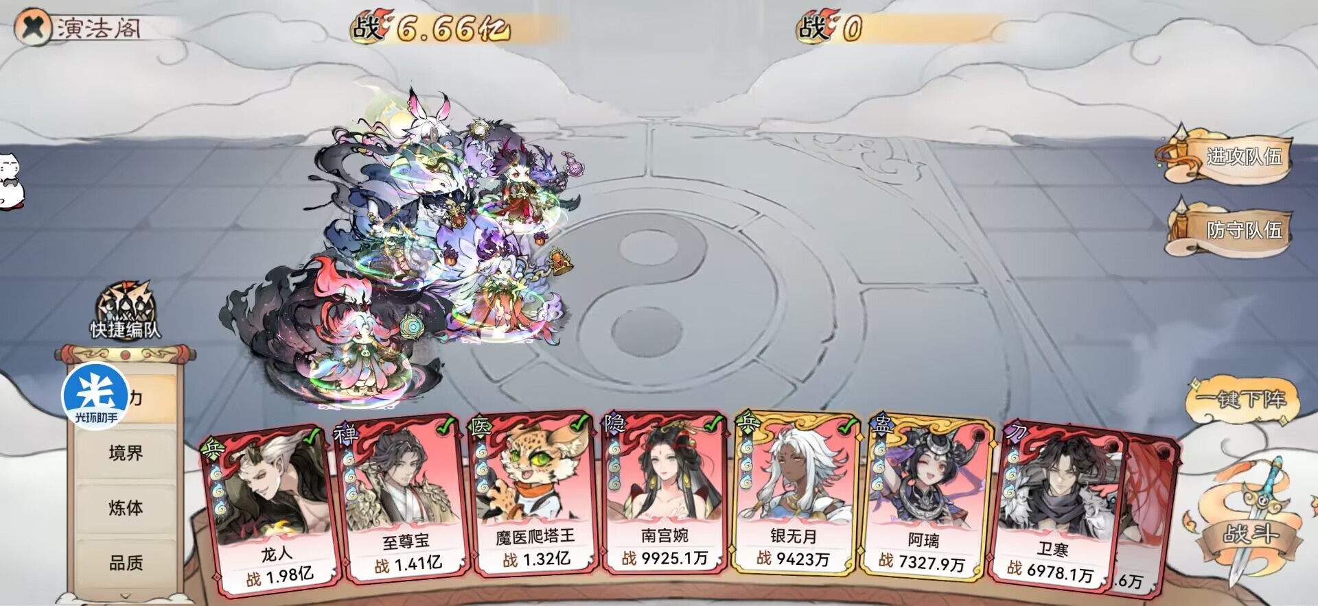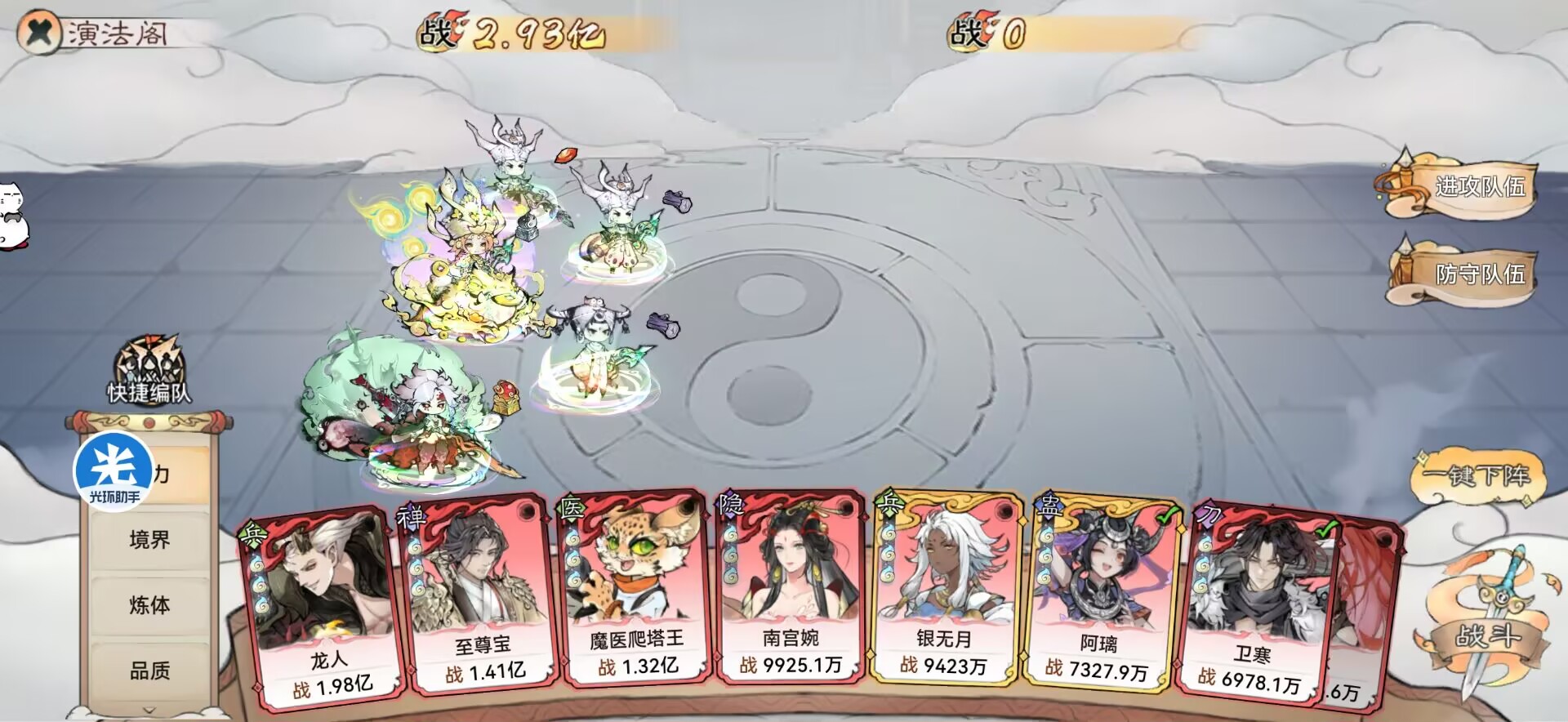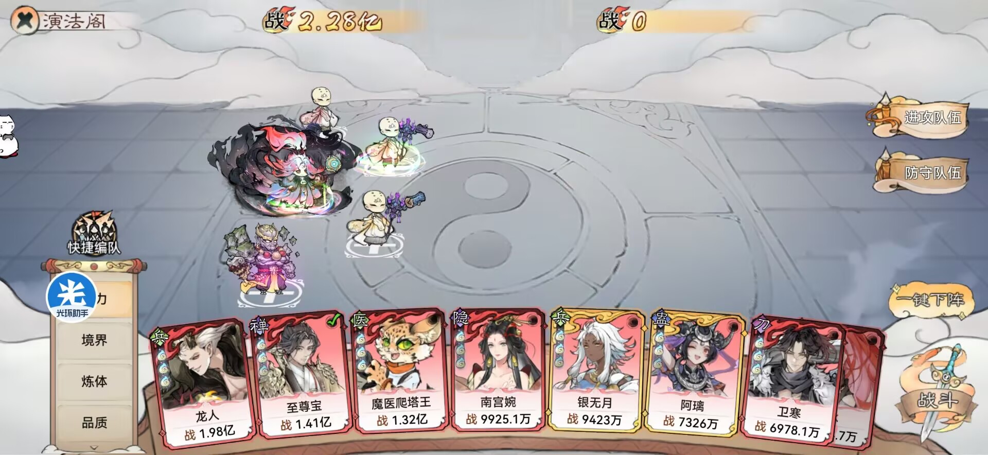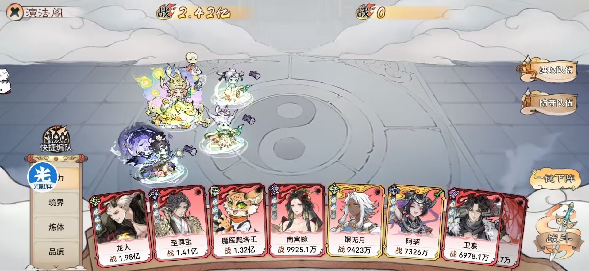 配队、功法、法宝的选择有尤其重要,搭配的好【我方战力1亿】打4亿的敌人也是完全ok的