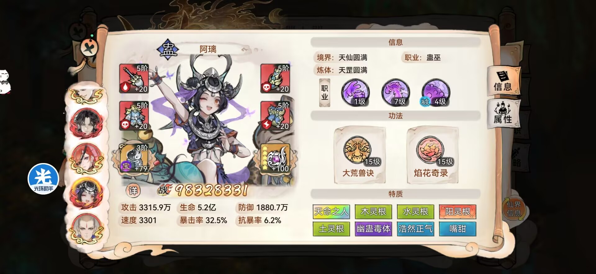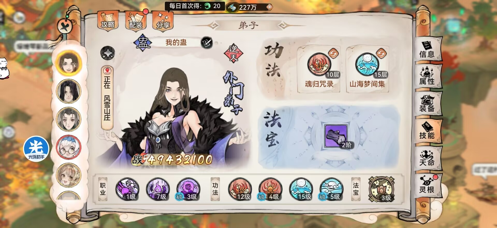 功法还是带:魂归+山海或者凤魂。