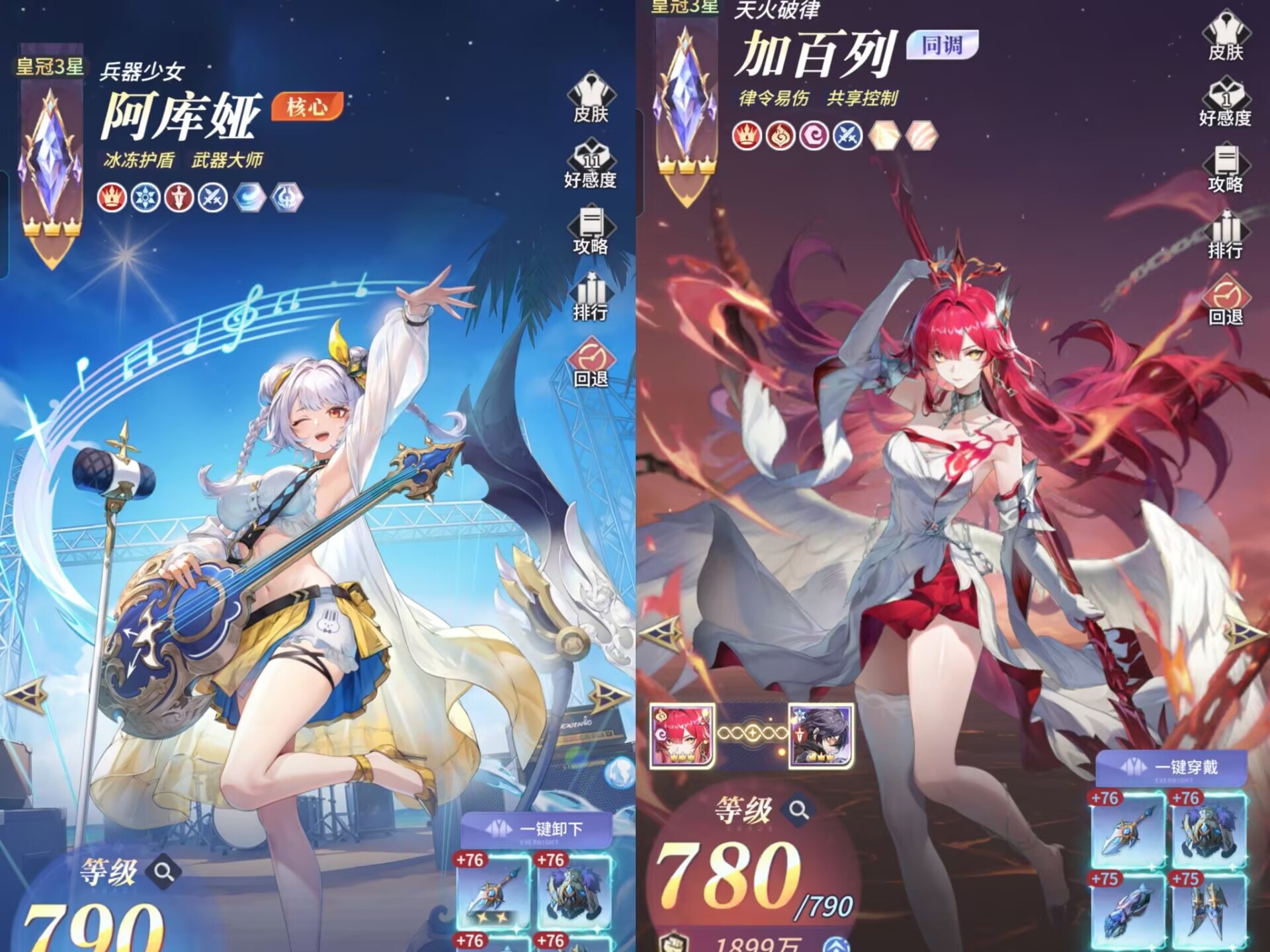 对比传统的冰队阿库娅的魔偶从控制为主,需要调整为【嗜血】【缠绕】这样伤害更高,阿库娅控制失败就可以触发缠绕魔偶的追击,嗜血魔偶可以让阿库娅每段攻击触发真伤,配合队伍加百列和莎菲尔的多频控制,可以更好触发阿库娅的追击从而配合魔偶打出真伤。