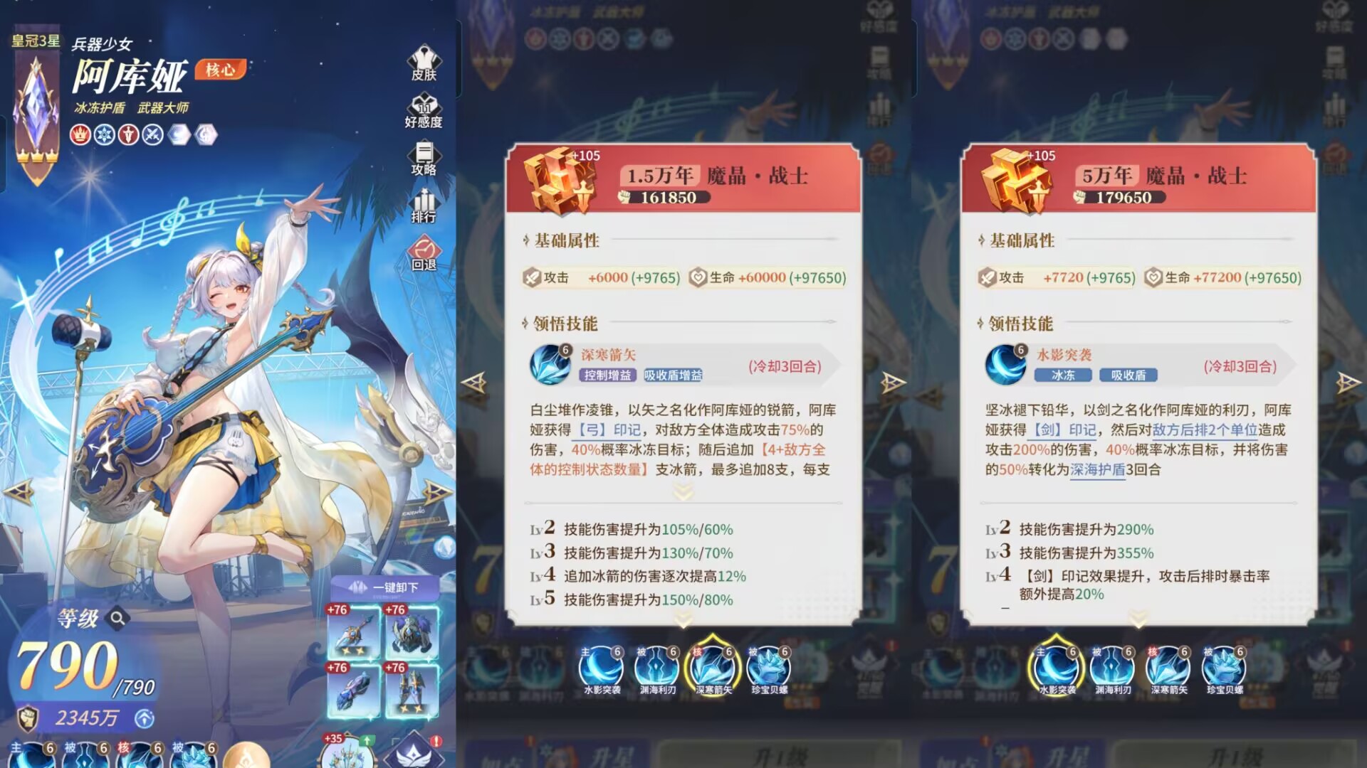 ③阿库娅:阵容主力,同时具备强悍的控制能力能够全体冰冻敌人配合上加百列的高频眩晕💫控制,让敌人感受下冰冻+眩晕控制的威力。