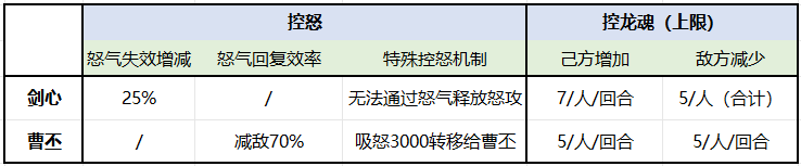 比较核心的控怒控龙魂能力,剑心和曹丕的对比如下: