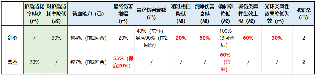 ⑤抗偏斜能力上,曹丕优于剑心,尤其是曹丕个人自带的150%抗偏斜,真伤主C当之无愧,剑心输出能力相对落后。