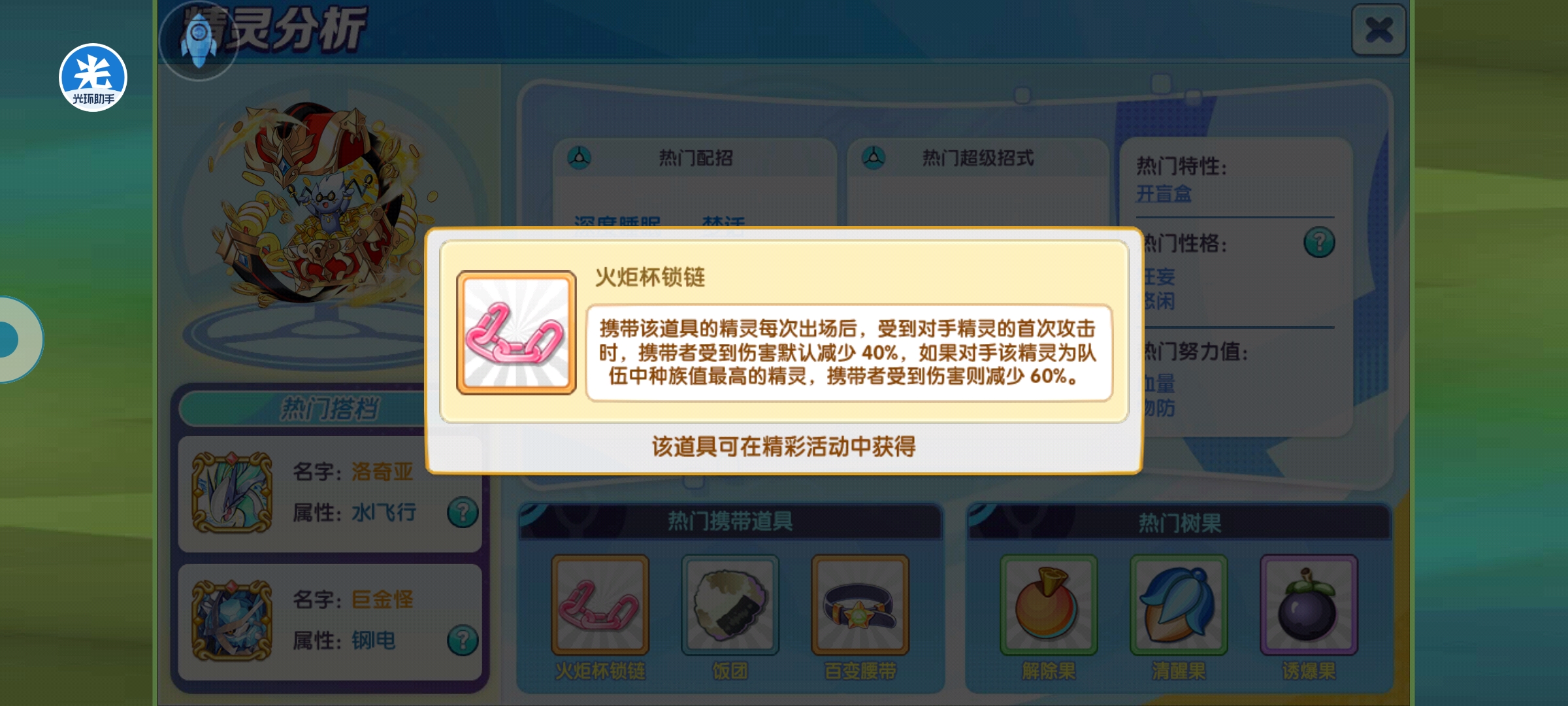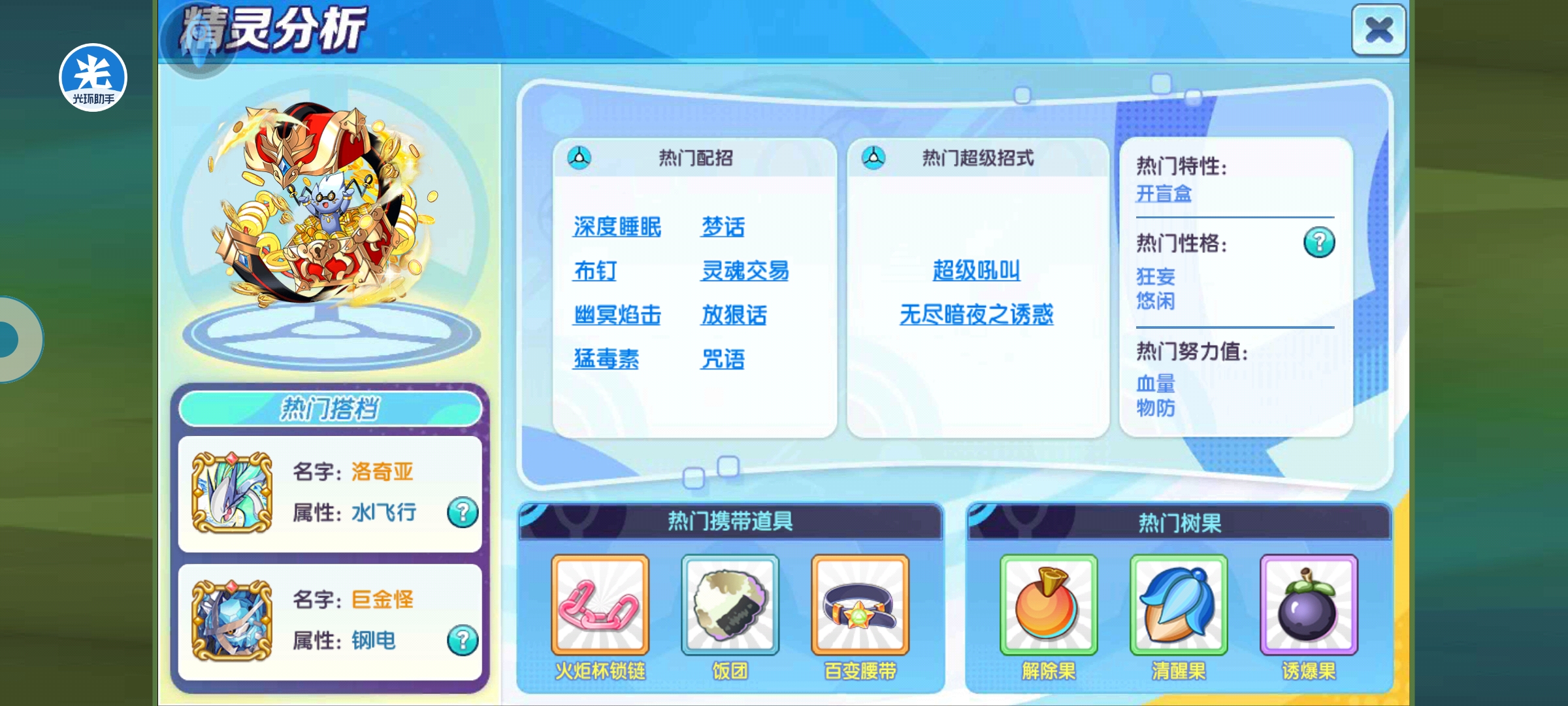 它由于是盾牌走向,建议是对战中再添加高输出和属性弥补的宠物,高输出其实比较推荐洛奇亚,它作为队友还是很给力,让索财灵骚扰,它可以高输出,相当美滋滋,还有属性上来看日月精灵和长毛巨魔就和它很搭配,很好的弥补了它的一些弱点。