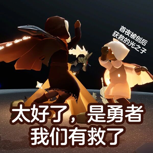 表情包分享 | 太好了是勇者!是泽哦发布于 11-18关注搓手等待新一轮对局开启发挥智慧和胆识侦破迷局围观吃瓜,没想到下一秒就被点名身份揭晓,谁才是本局真正的MVP?🔍️《光·遇》x 《狼人杀官方》特别活动即将开启小光送来精心制作的表情包欢迎旅人们在评论区交流分享冥龙之夜的独家技巧噢~
