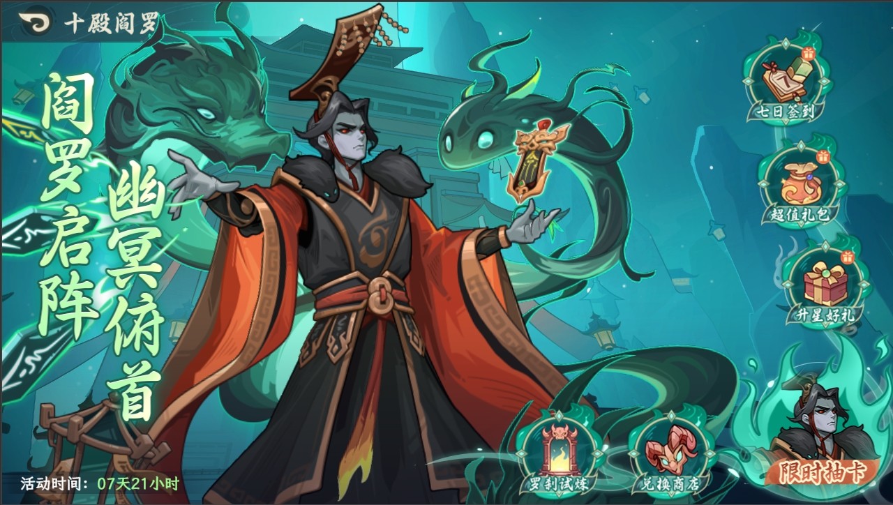 活动开启期间,专属UP英雄十殿阎罗的抽取概率UP!!!活动卡池结束15天后,十殿阎罗将会加入常驻搜神。