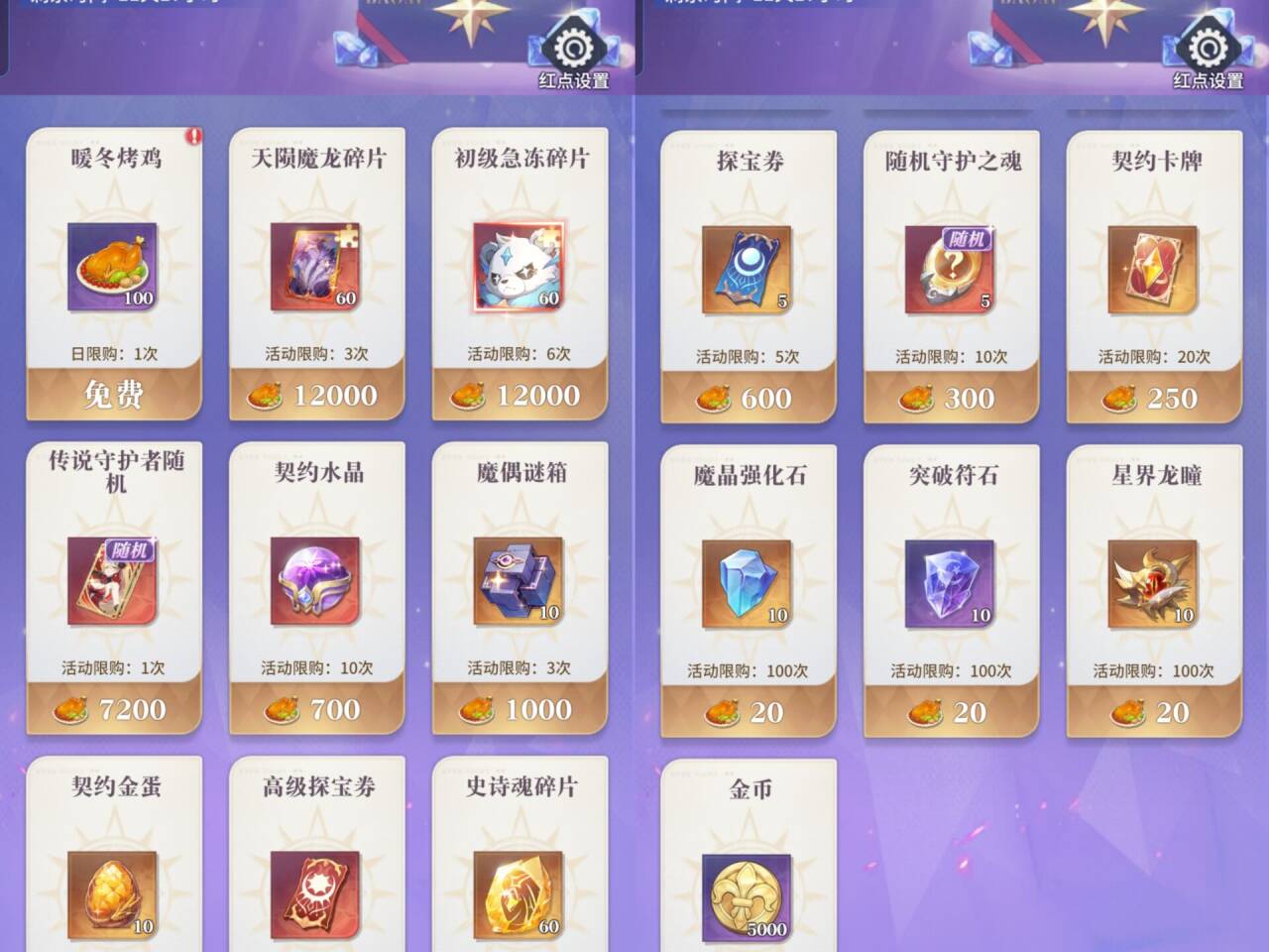 ②其次可以兑换:天陨魔龙、传说守护者随机、契约水晶。这些核心资源。
