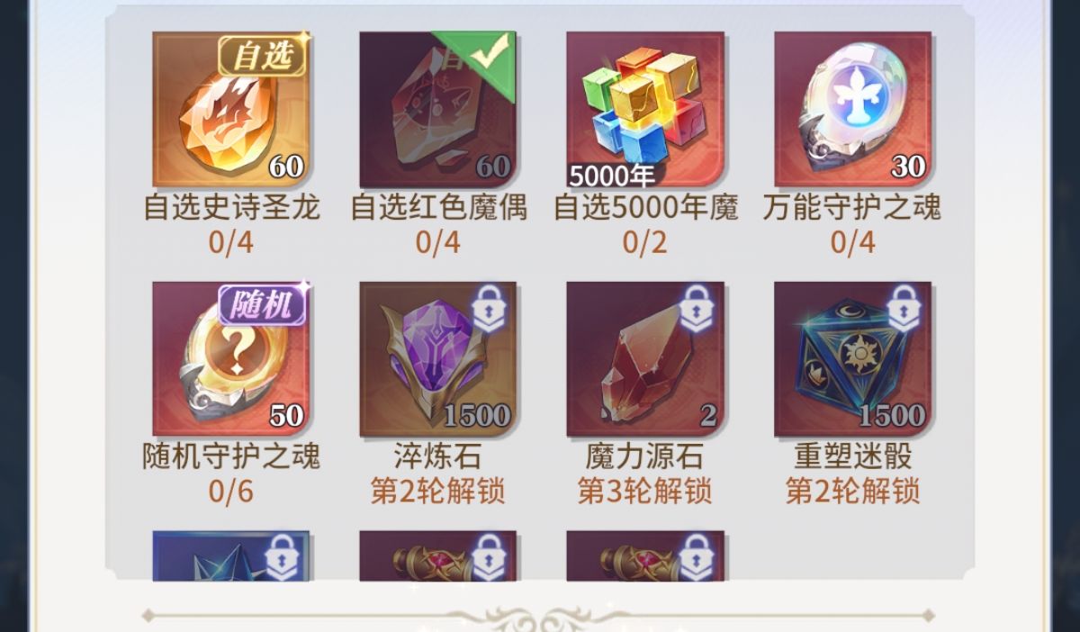 1:第一轮推荐优先拿:魔偶和圣龙(其他看自己的需求来拿吧)