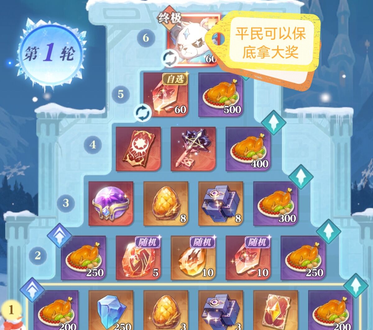 ⑤抽中非爬升奖会下降1层(道具不放回,所以这个活动也是要吃保底的)。
