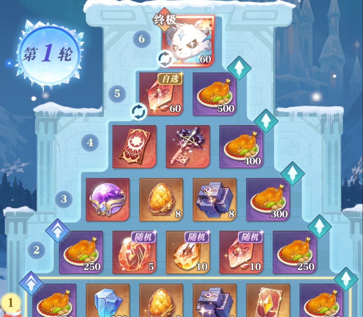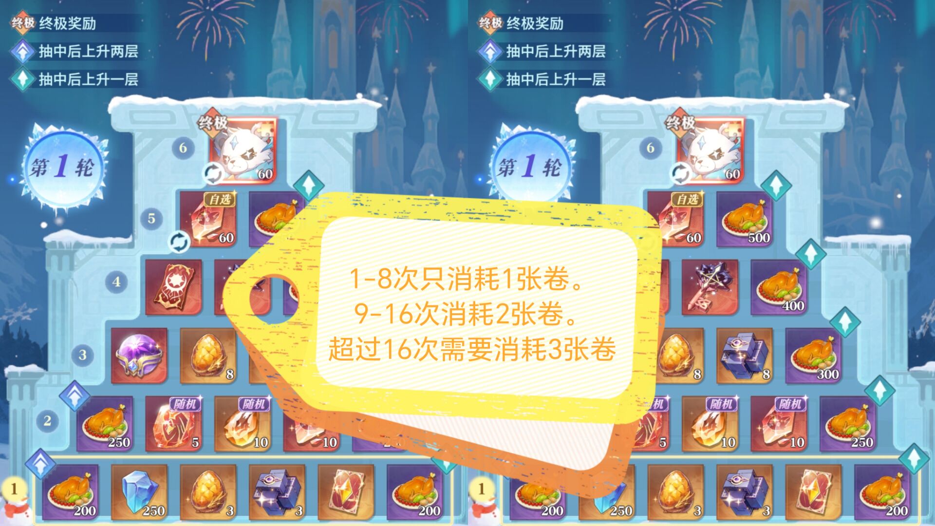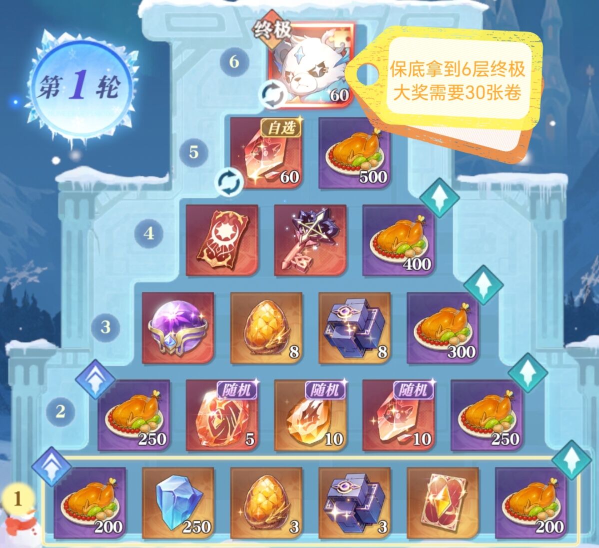 ⭐2层保底上升到3层=需要5张暖冬卷。