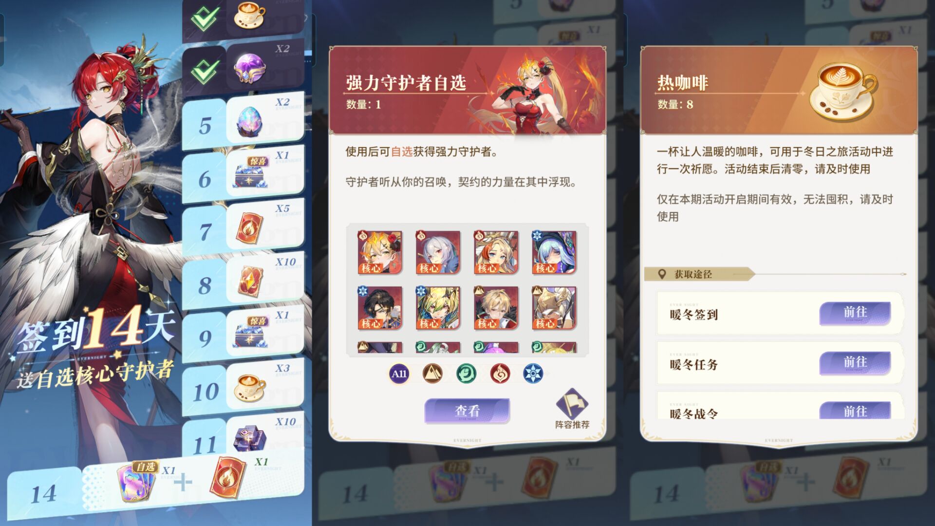 1:首先是活动签到方面。14天完成所有签到可以获得丰厚的奖励,最终可以拿到【强力守护者自选】。