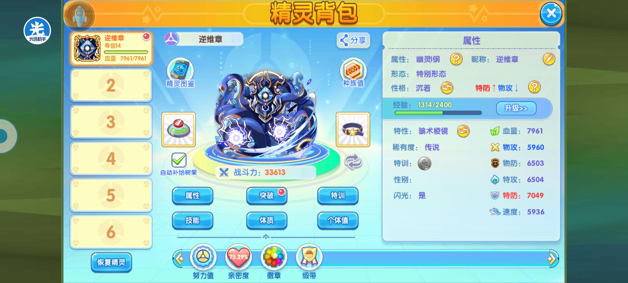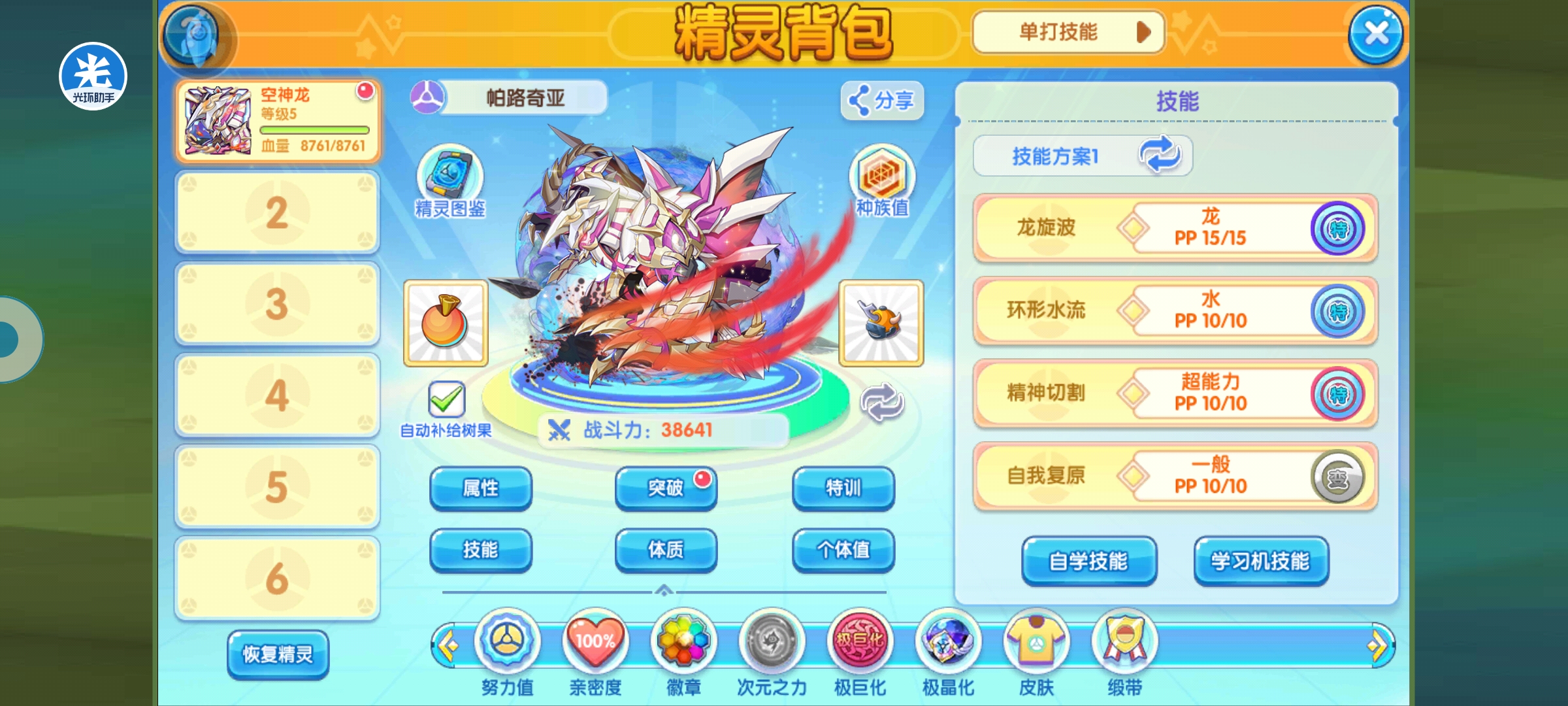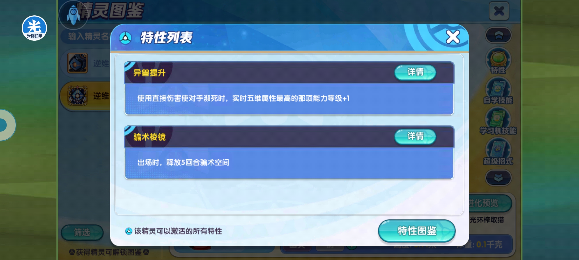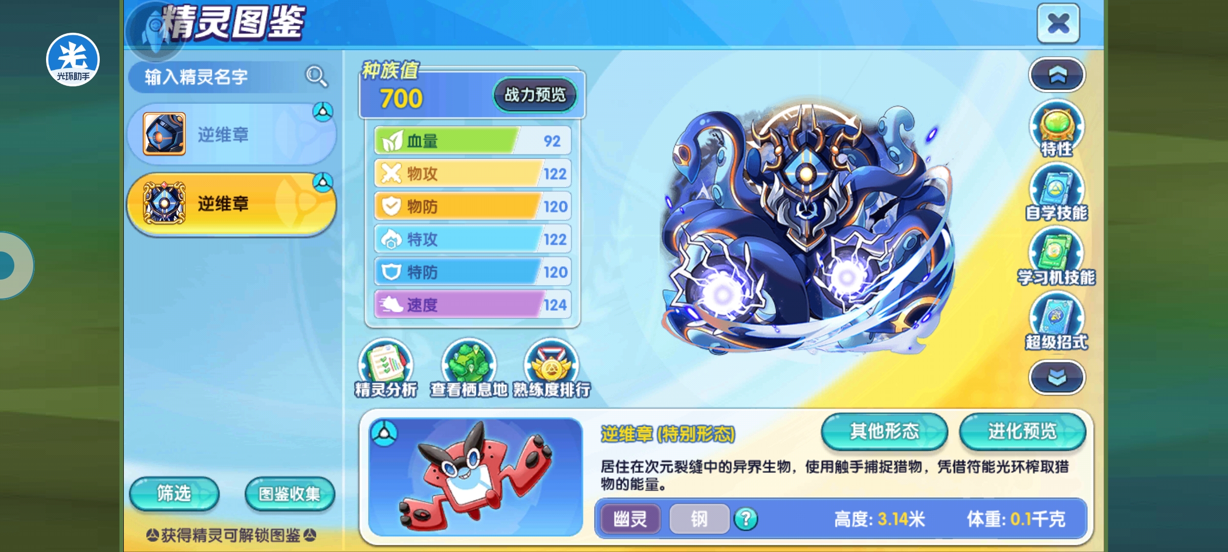 说一下大招的选择,逆纬章的大招可带的只有四个,个人推荐后面里面,超级高空俯冲,技能优先度3,目标退场,选择对方背包中下一只精灵上场,可以用来出其不意收割,而且还能逼退强化。