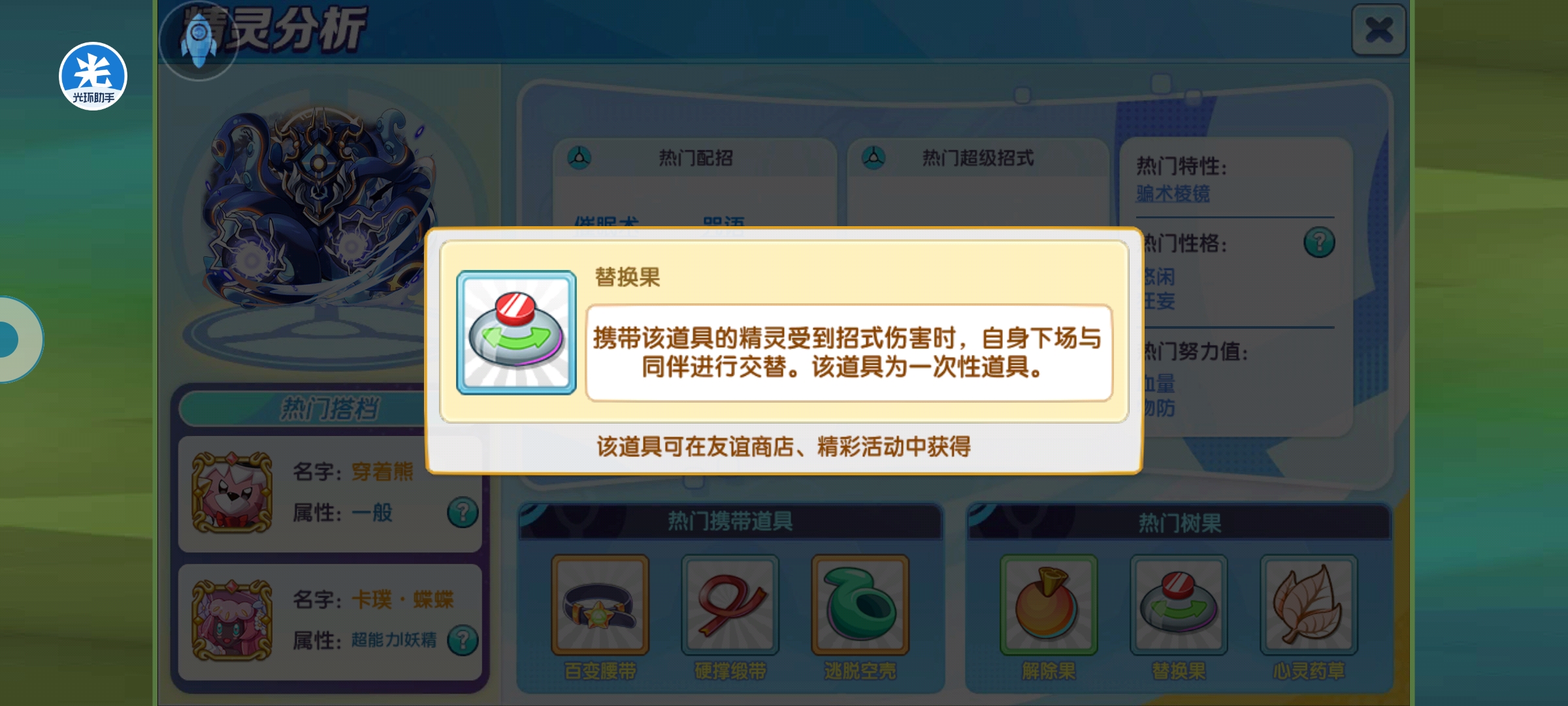效果是出场时,释放骗术空间,速度慢的精灵先行动,持续5回合。