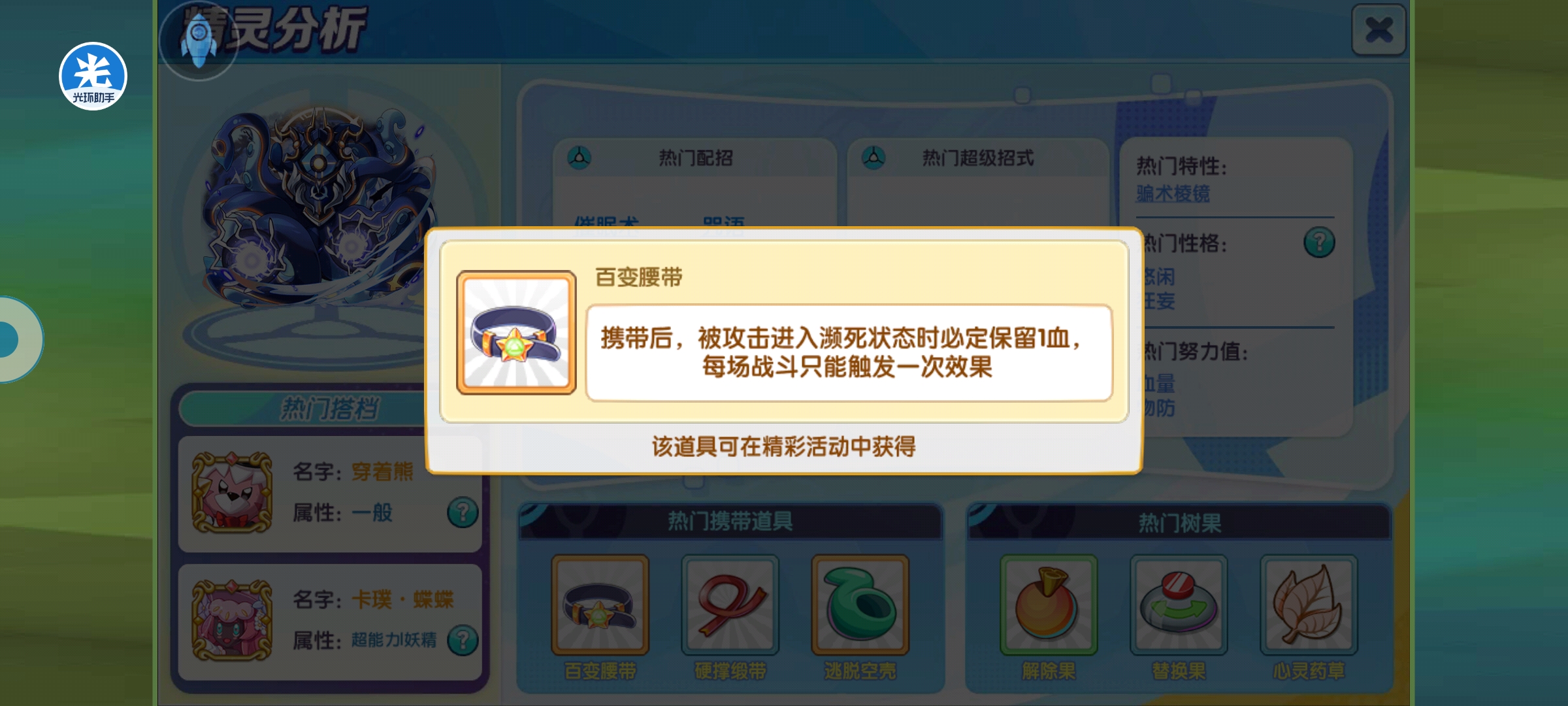 宠物的携带物要根据个人偏好和阵容搭配而定,如果喜欢将肉度做到极致的,可以选择携带锁链,没有老鼠牙也可以选择特盾装甲或者物盾装甲,增加肉度。作为盾宠,也可以携带百变腰带,增加容错。