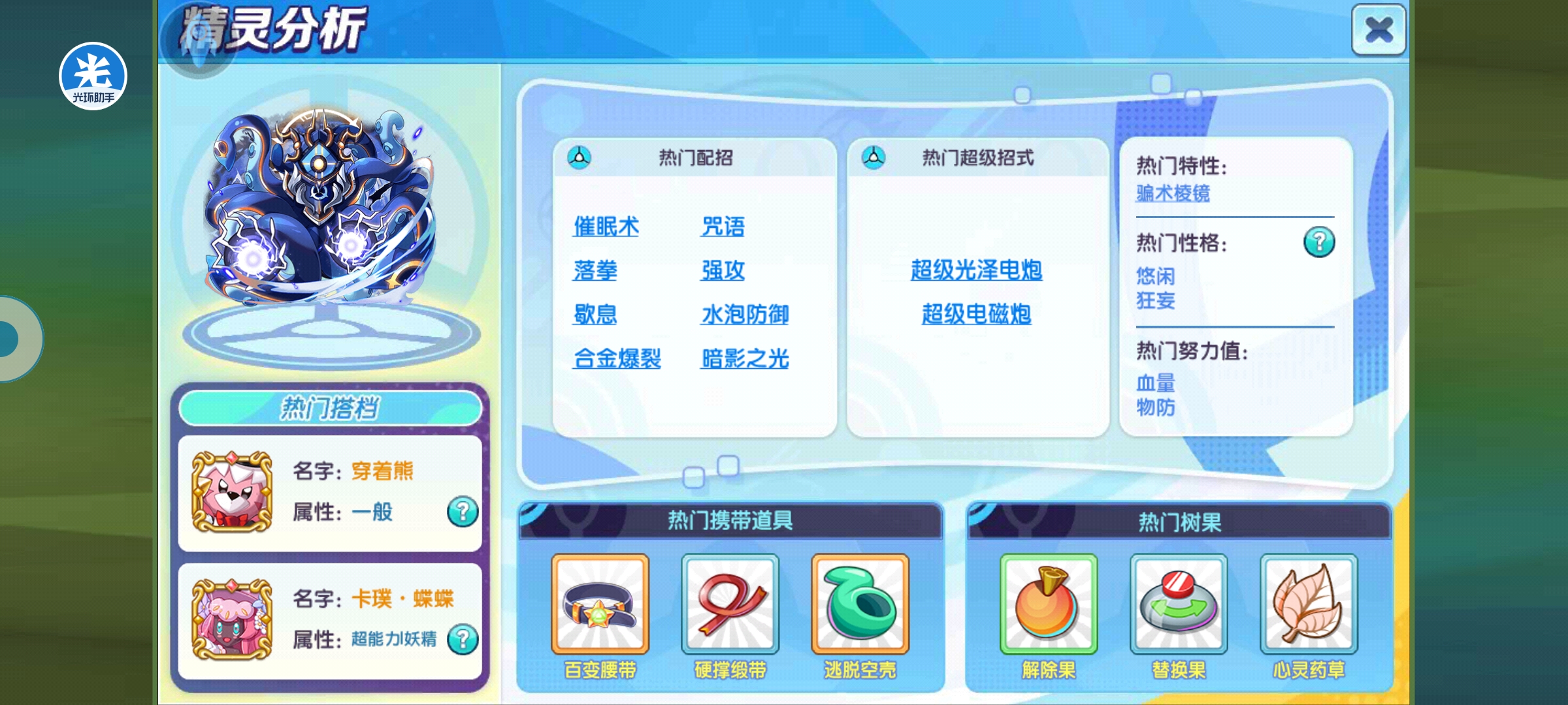 努力方向应该为血量+物防或者特防方向,注重物防的话,选择悠闲性格,当然也可以走特防狂妄性格。