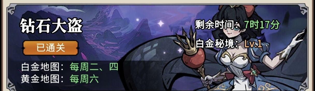 1:【钻石大盗】开启时间。