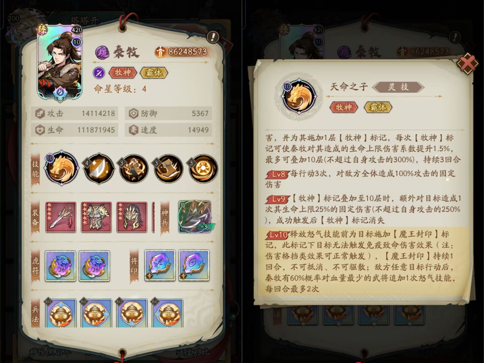 灵10秦牧【牧神标记】属于负面buff,叠到10层所触发的固伤也是属于:负面固伤。