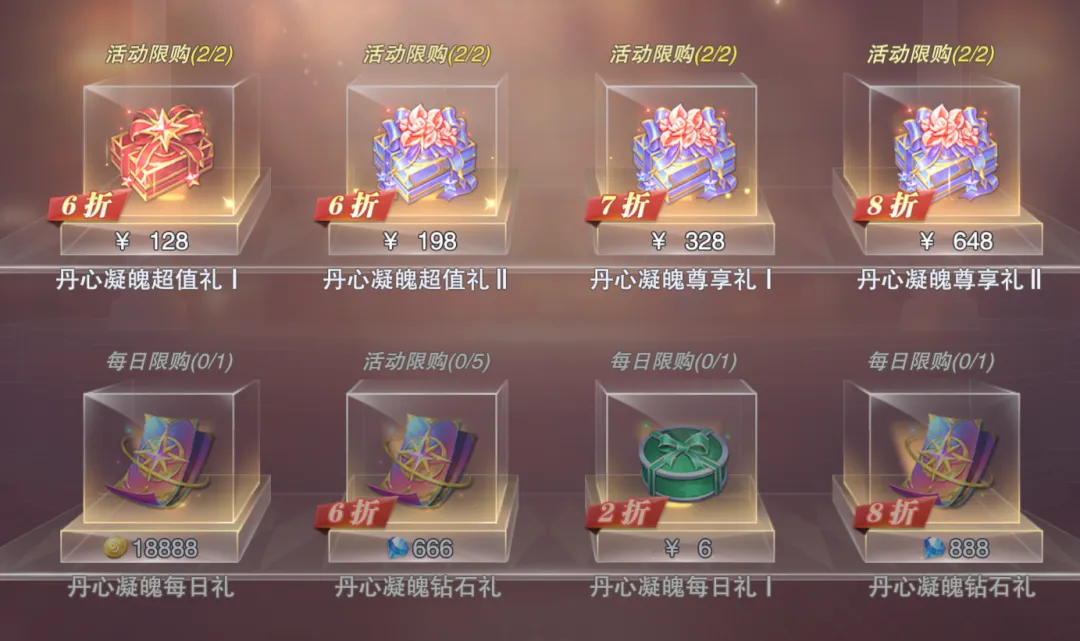 买完每日68元礼包后会解锁活动限购128元、198元、328元和648元礼包