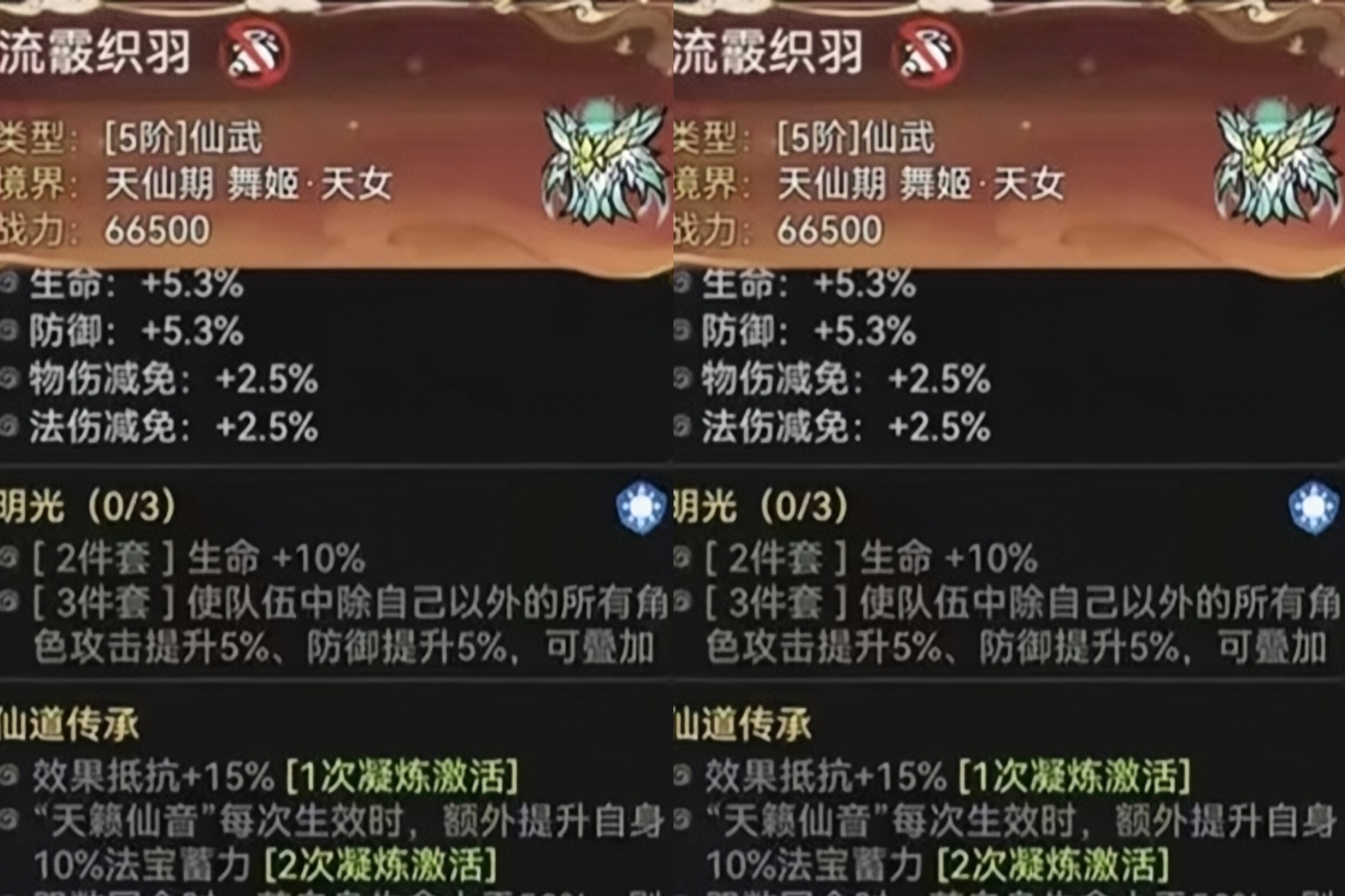 总结:总体来说仙舞的这件仙装强度属实一般没有特别突出的加成,而且本来仙舞就没啥人转这个仙装出了以后又不能真正改变仙武强度所以意义不大。