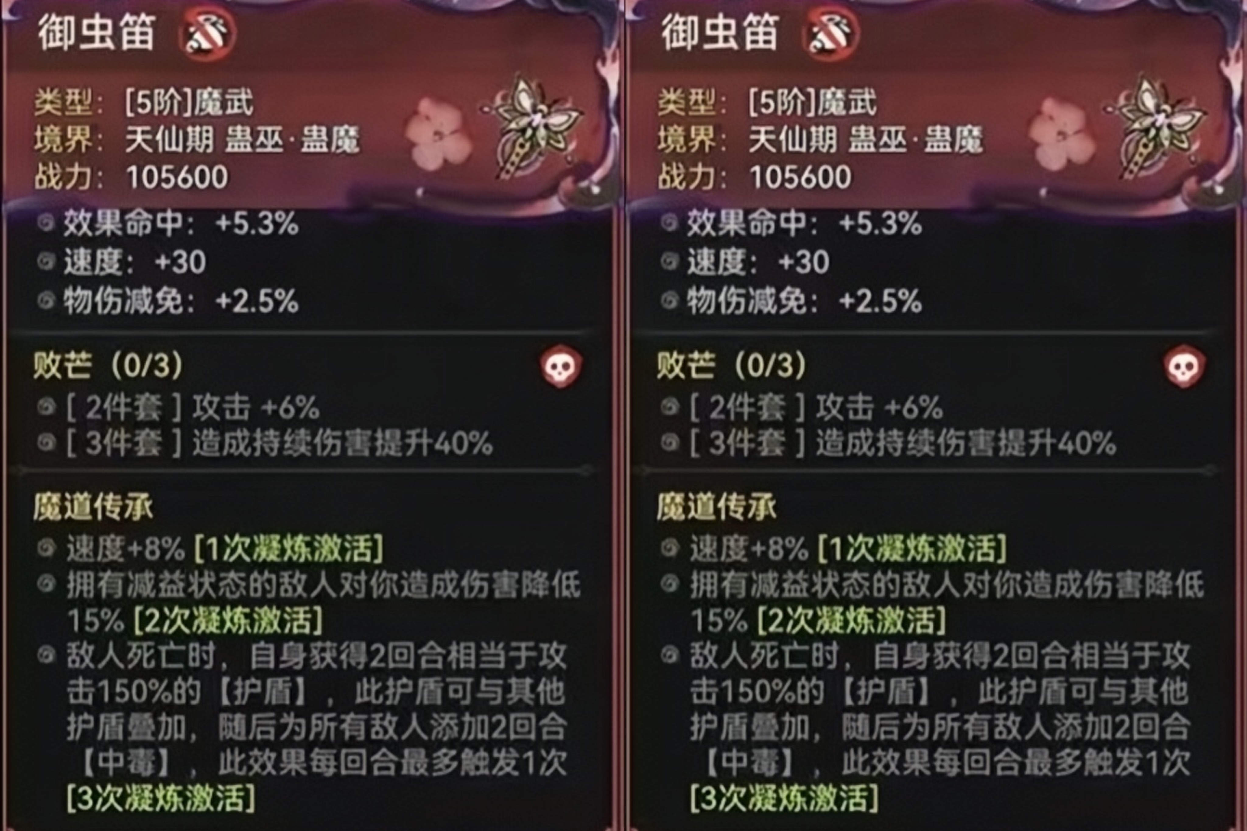 总结:总体来说这把魔剑强度也一般,也是锦上添花没有太实质的提升,凝练一阶和凝练二阶提升效果好评!毕竟效果命中越高越好,特别是打高闪避弟子比如萧晨的时候很好用。