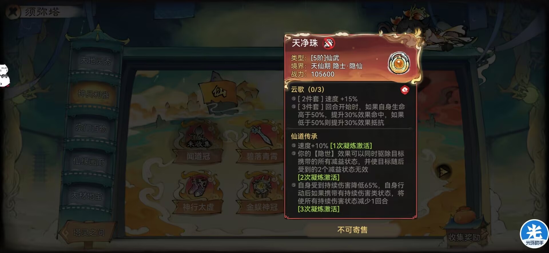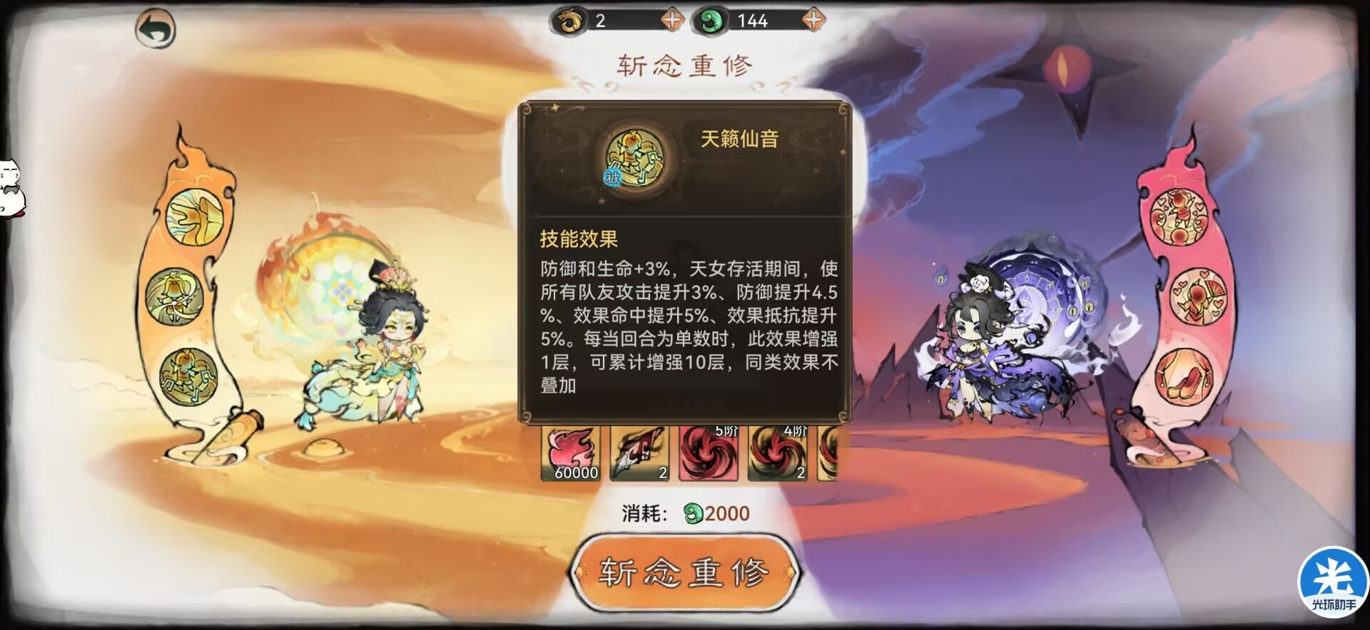 ②凝练二阶:可以使仙职业技能【天籁之音】每次生效可以提升10%法宝蓄力。