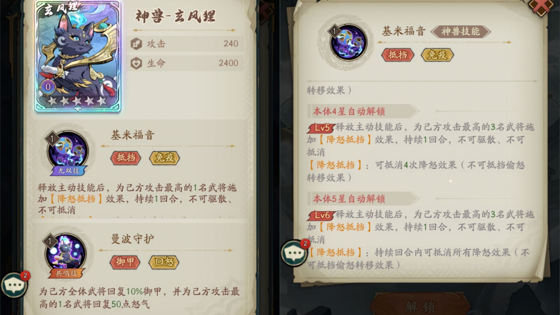 玄风狸2星=抵挡2次降怒(给3个队友)